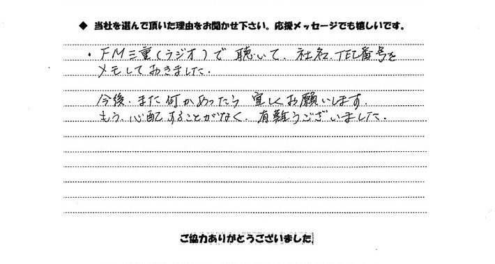 •   お客様の声/メンテナンス事例