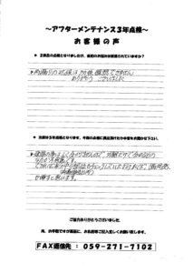 「 ケイミュー 金属サイディング」鈴鹿市東磯山N様 外壁カバー工法・3年アフター点検