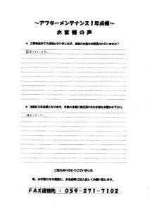 「ガルバリウム鋼板」津市榊原町K様 板金工事・1年アフター点検