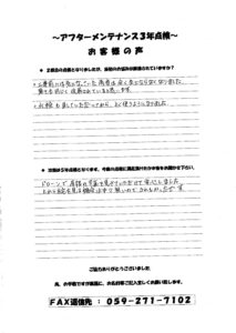 •   お客様の声/メンテナンス事例