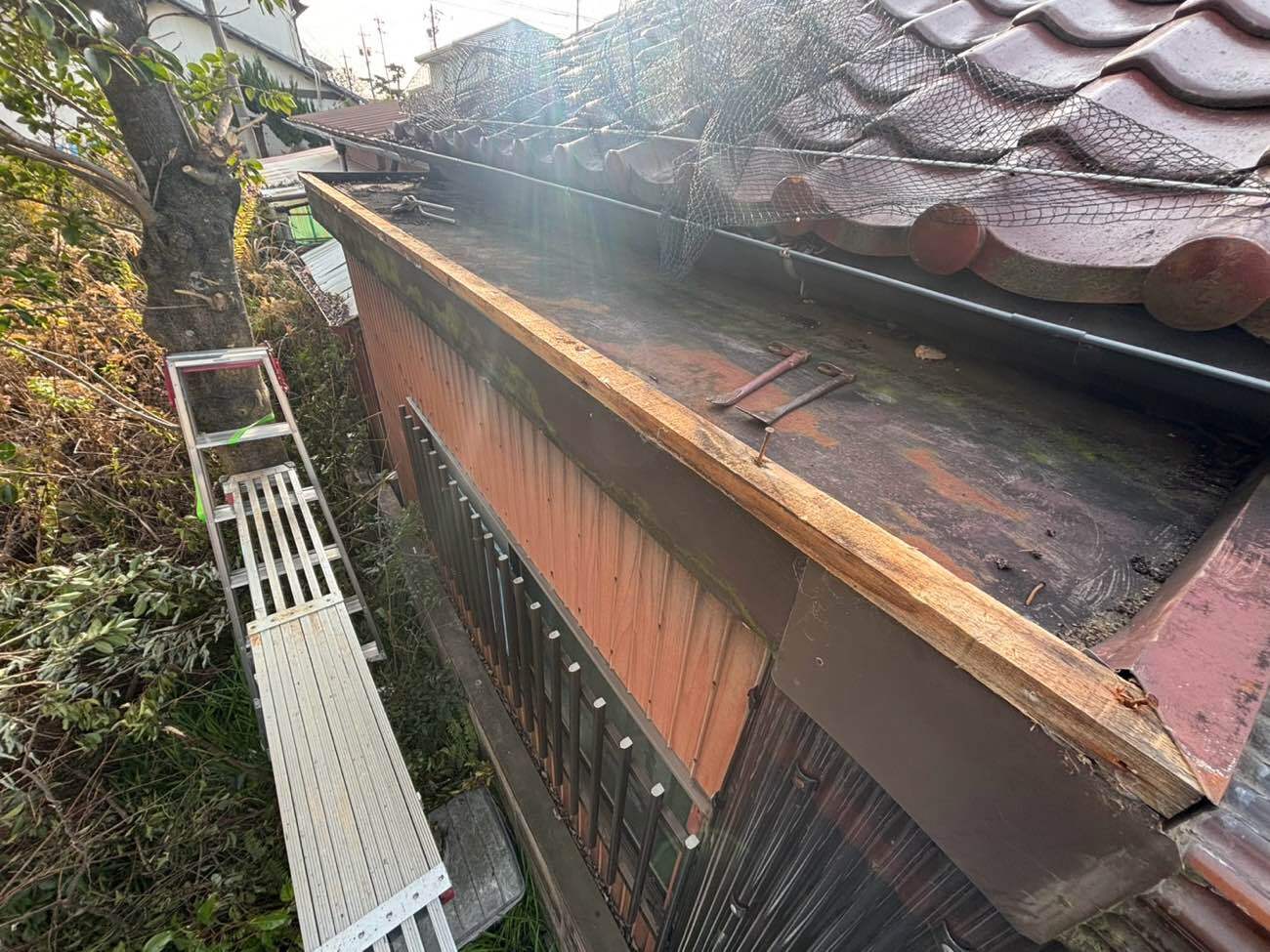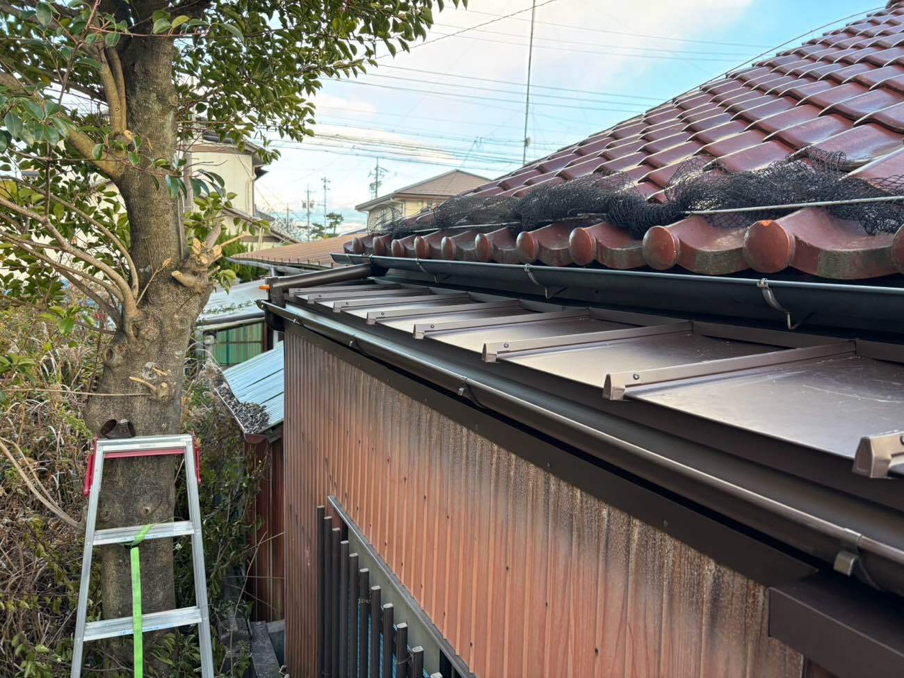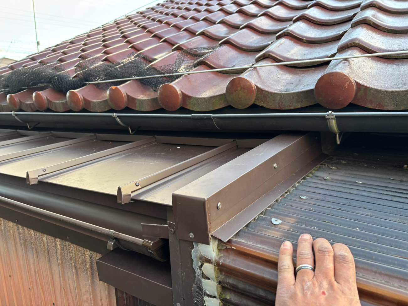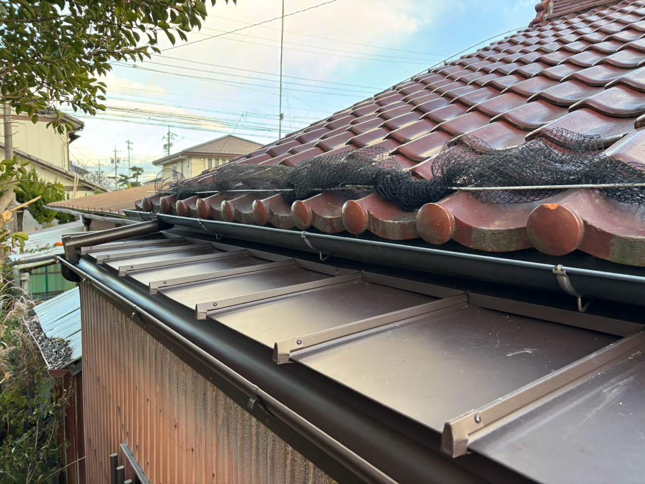 ⑫大屋根からの雨水が流れるように這い樋を施工しました。