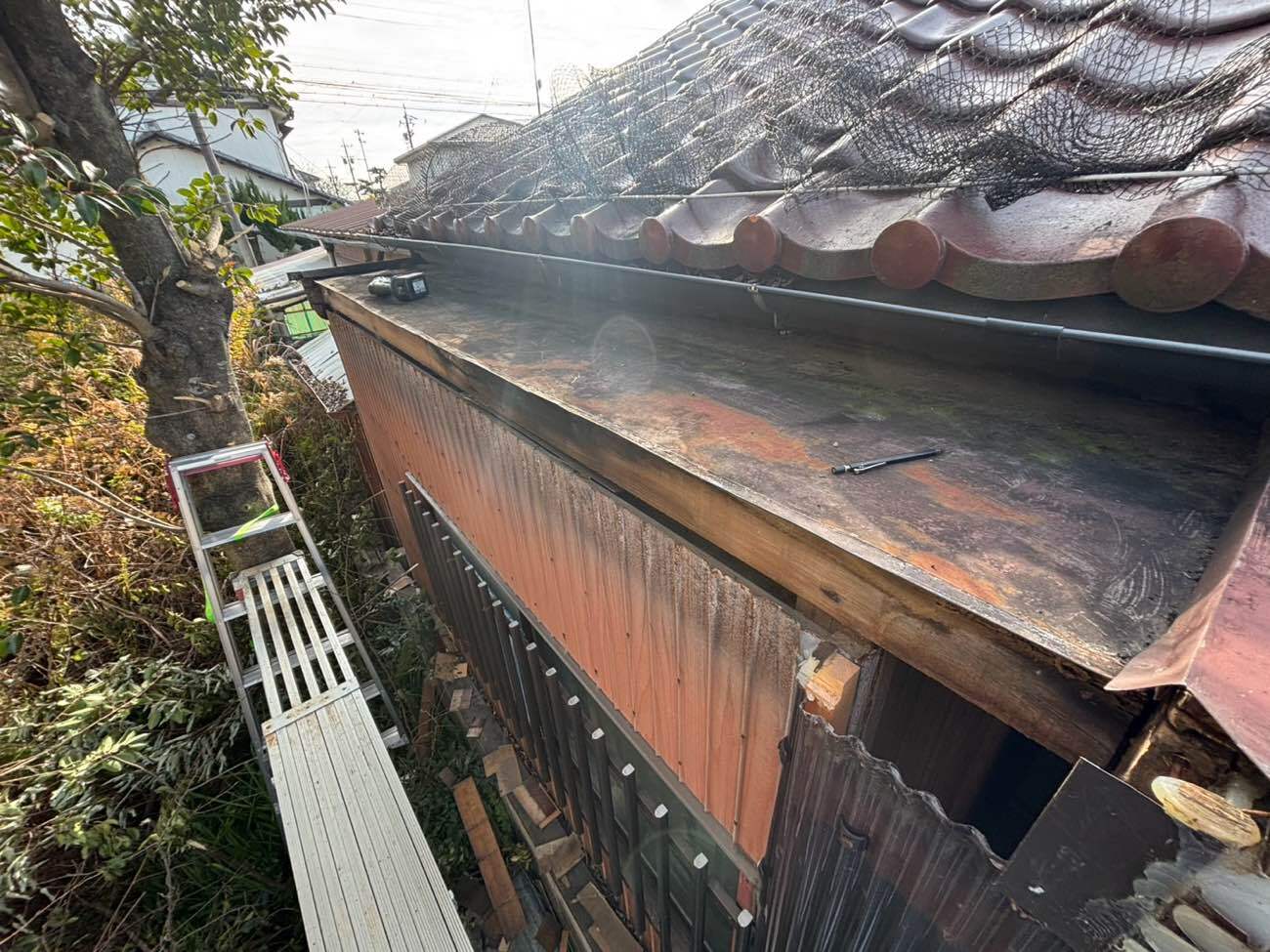 ①既存の金属屋根を解体撤去していきます。