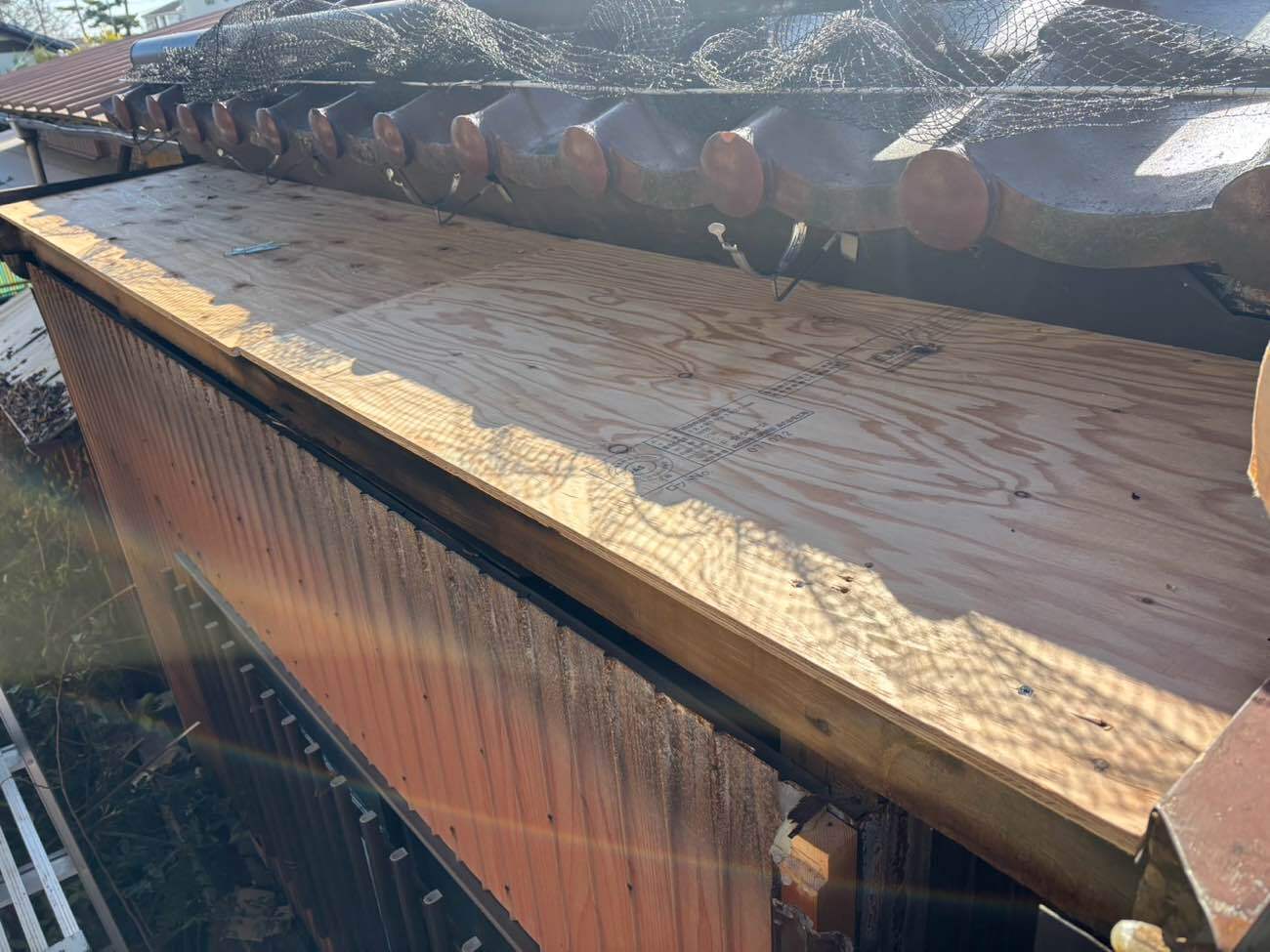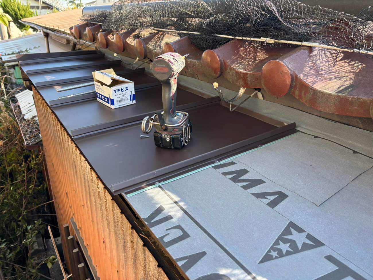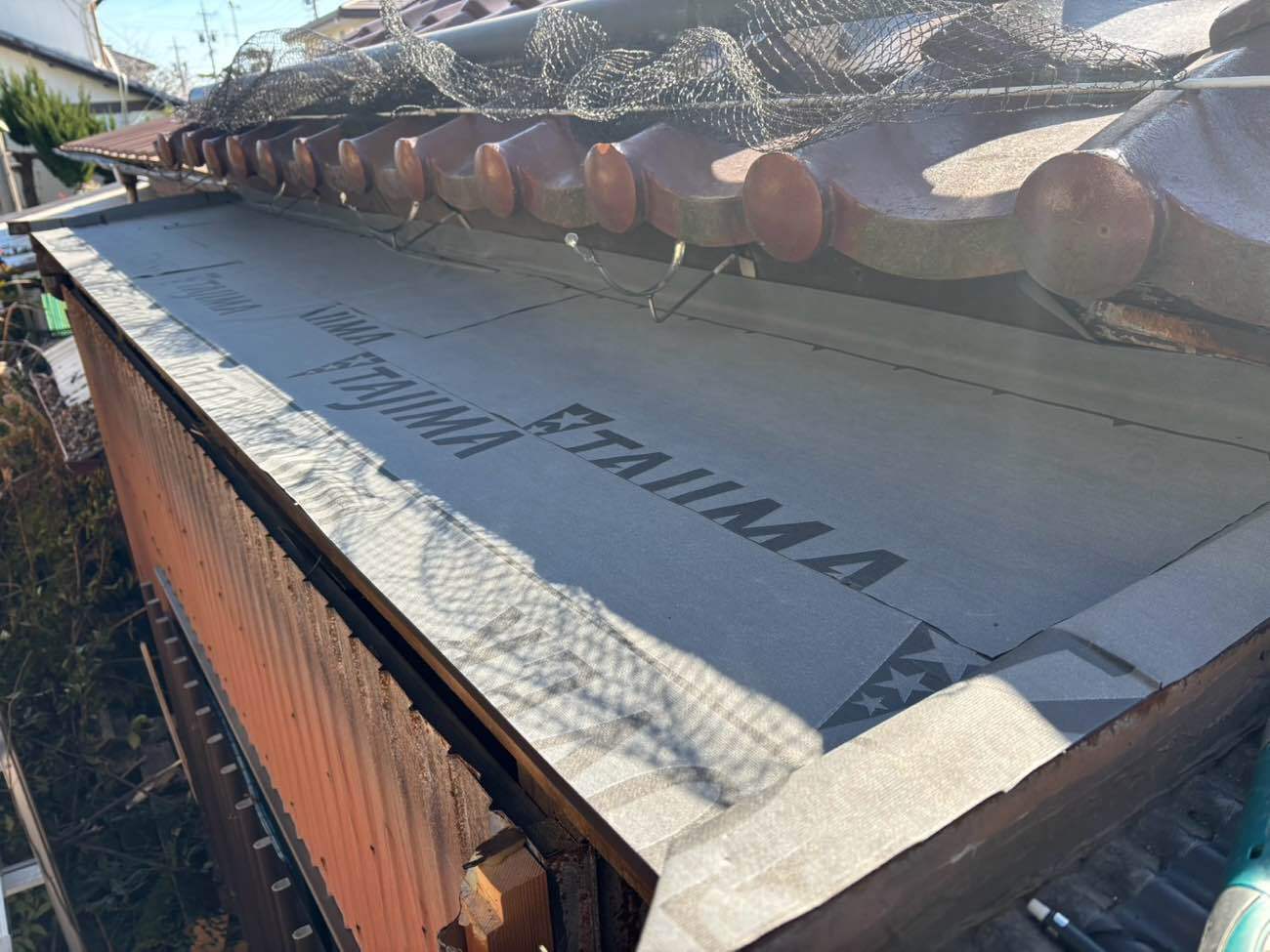 ⑤合板下地の上に、ルーフィング(防水シート)を貼りました。