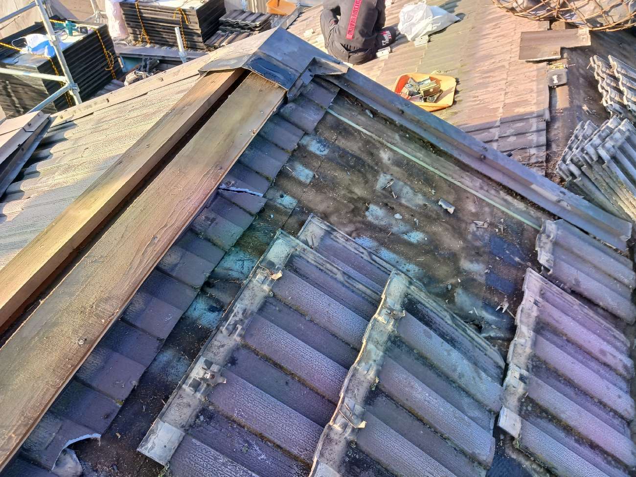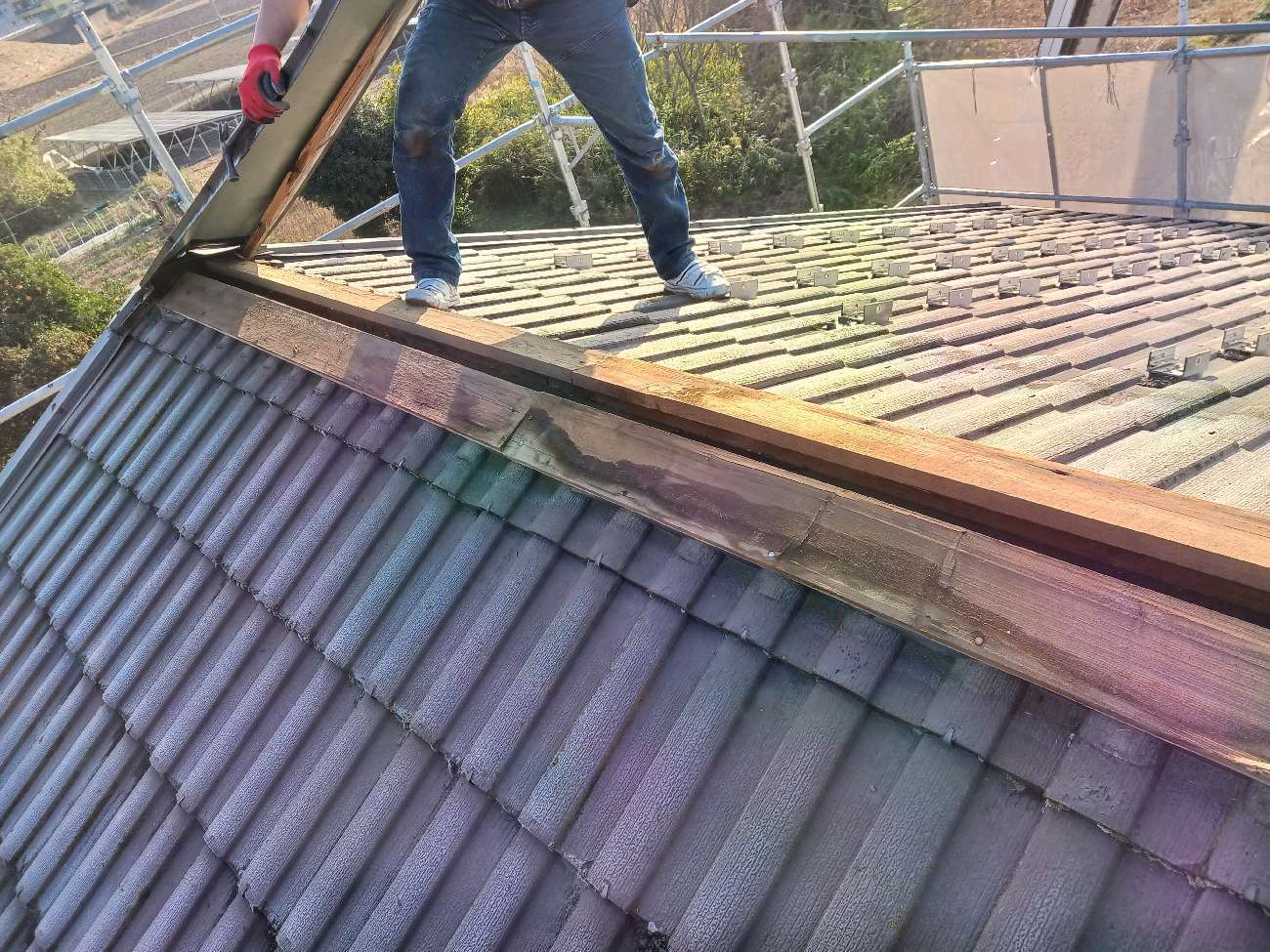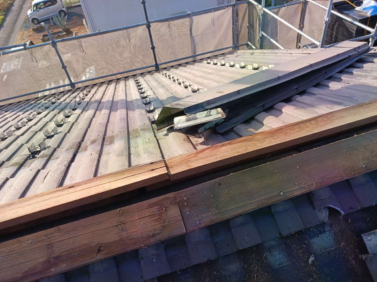 ②既存の棟板金を解体撤去しました。