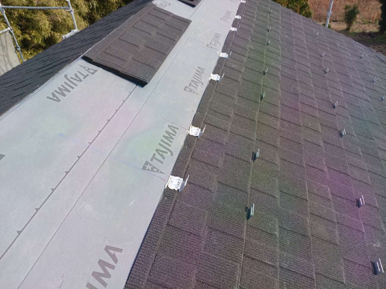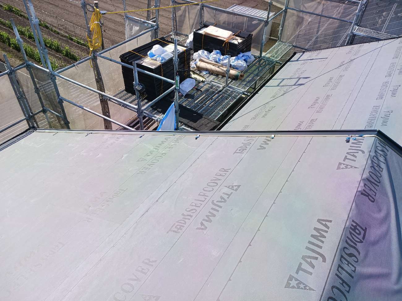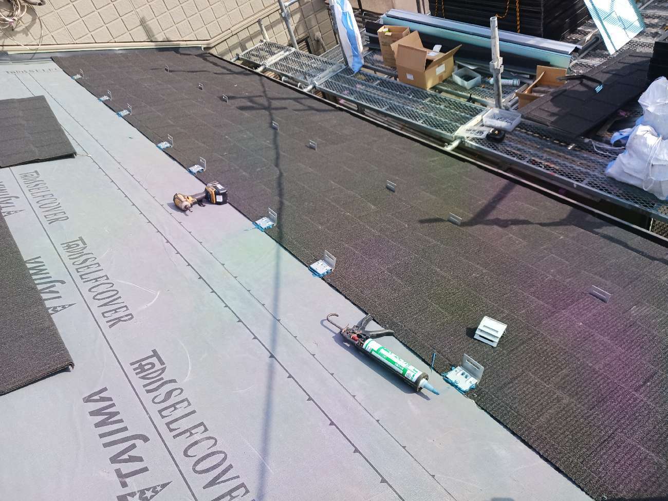 ⑩ルーフィング(防水シート)を施工していきます。