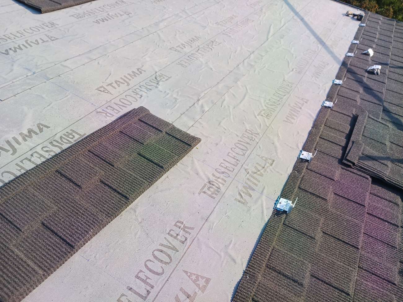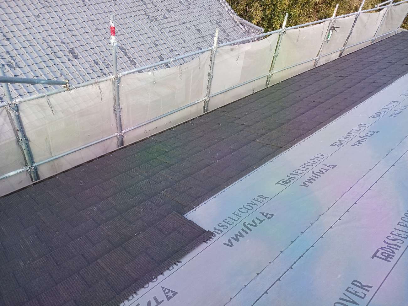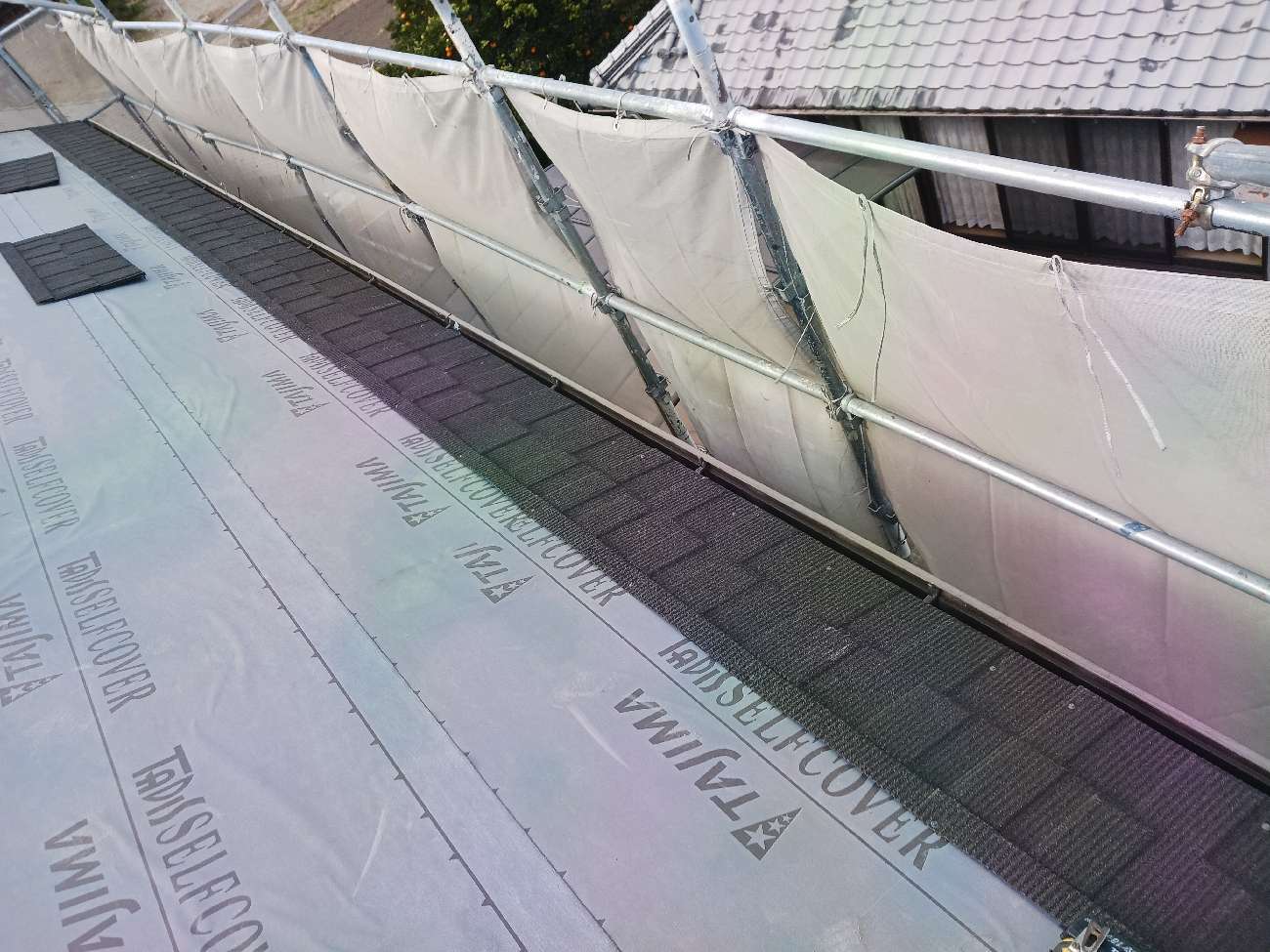 ⑩ルーフィング(防水シート)を施工していきます。