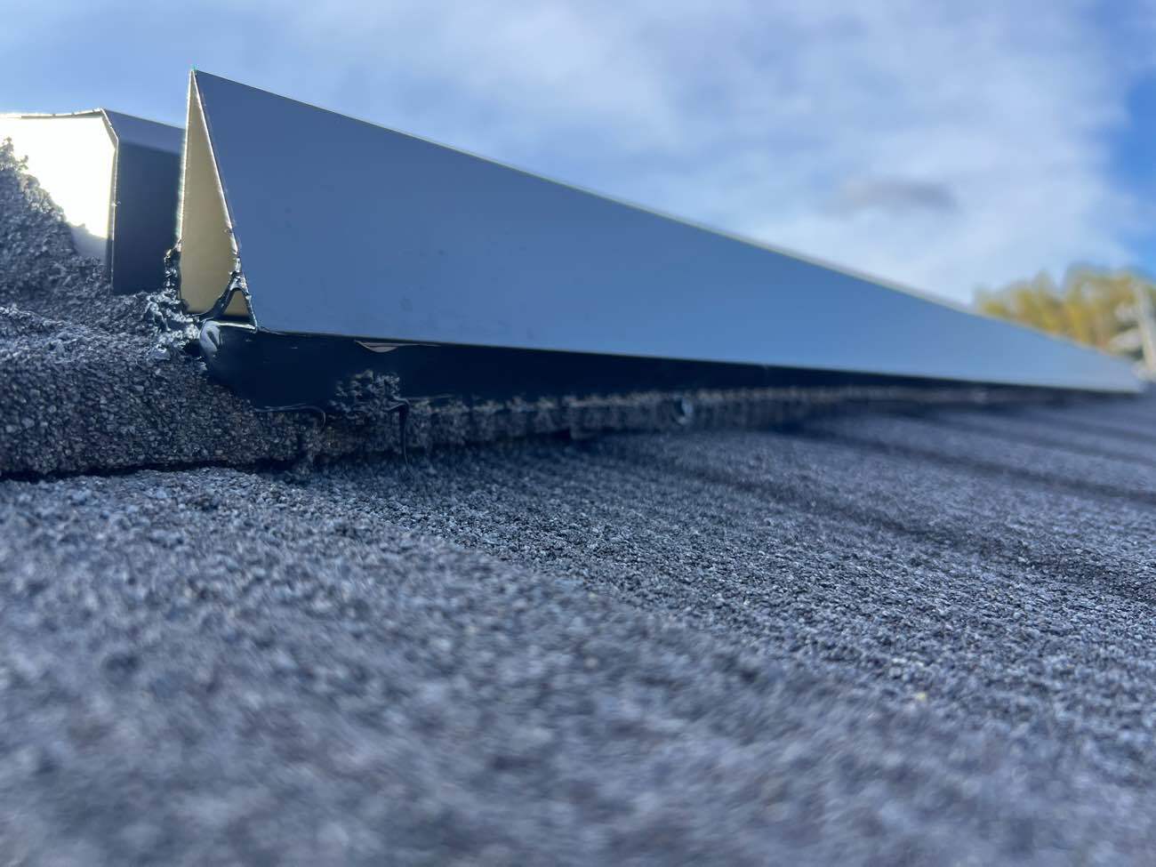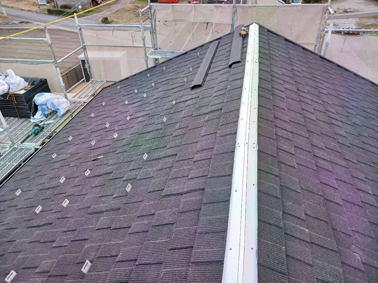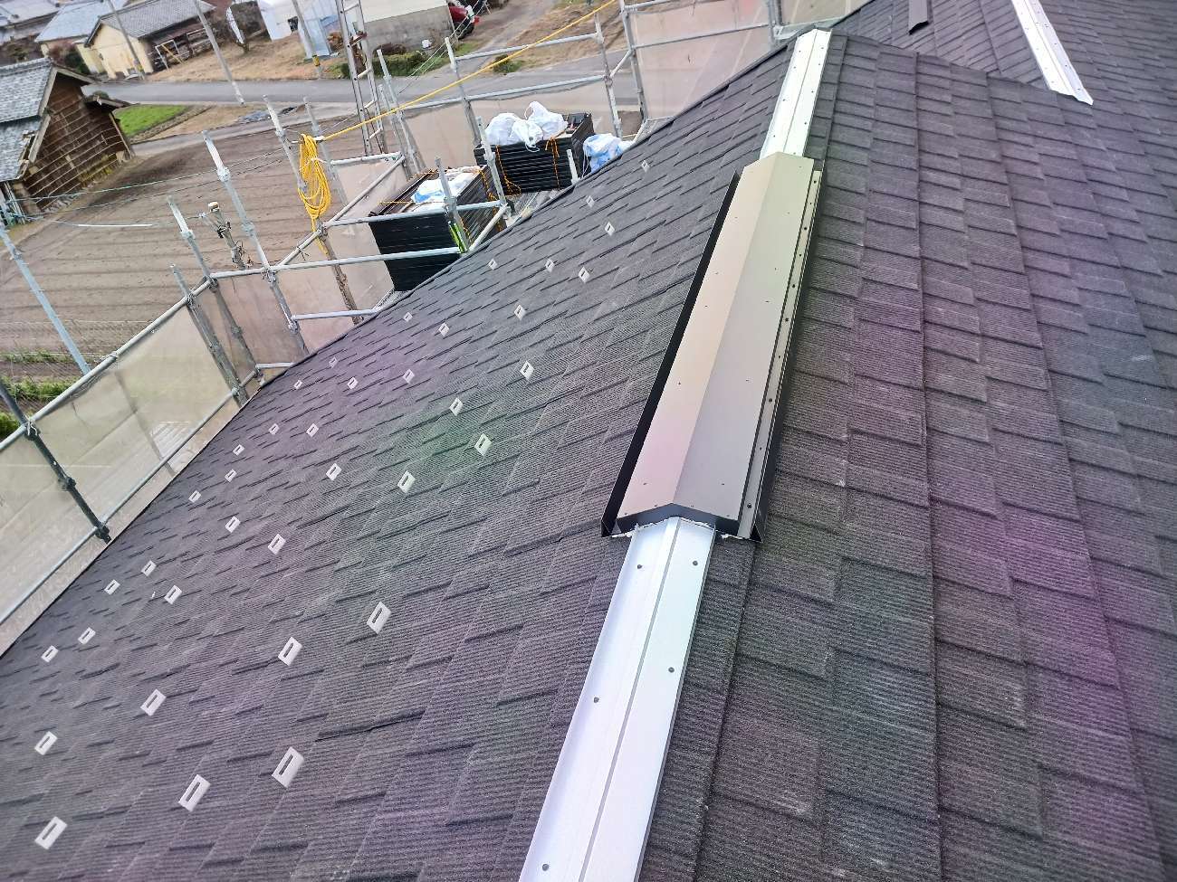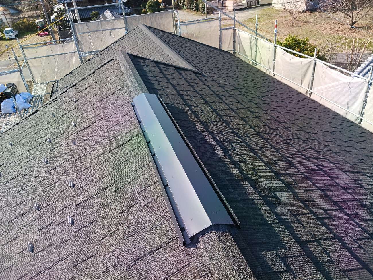 ㉓雨押え板金を施工し、屋根を葺き終えました。