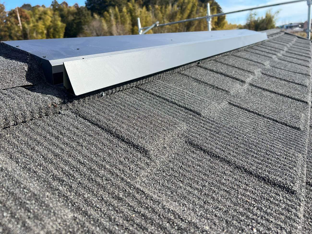 ⑨軒先水切り(屋根面を伝った雨水が外壁や軒裏に侵入するのを防ぎ、雨樋へスムーズに排出させる)を施工しました。