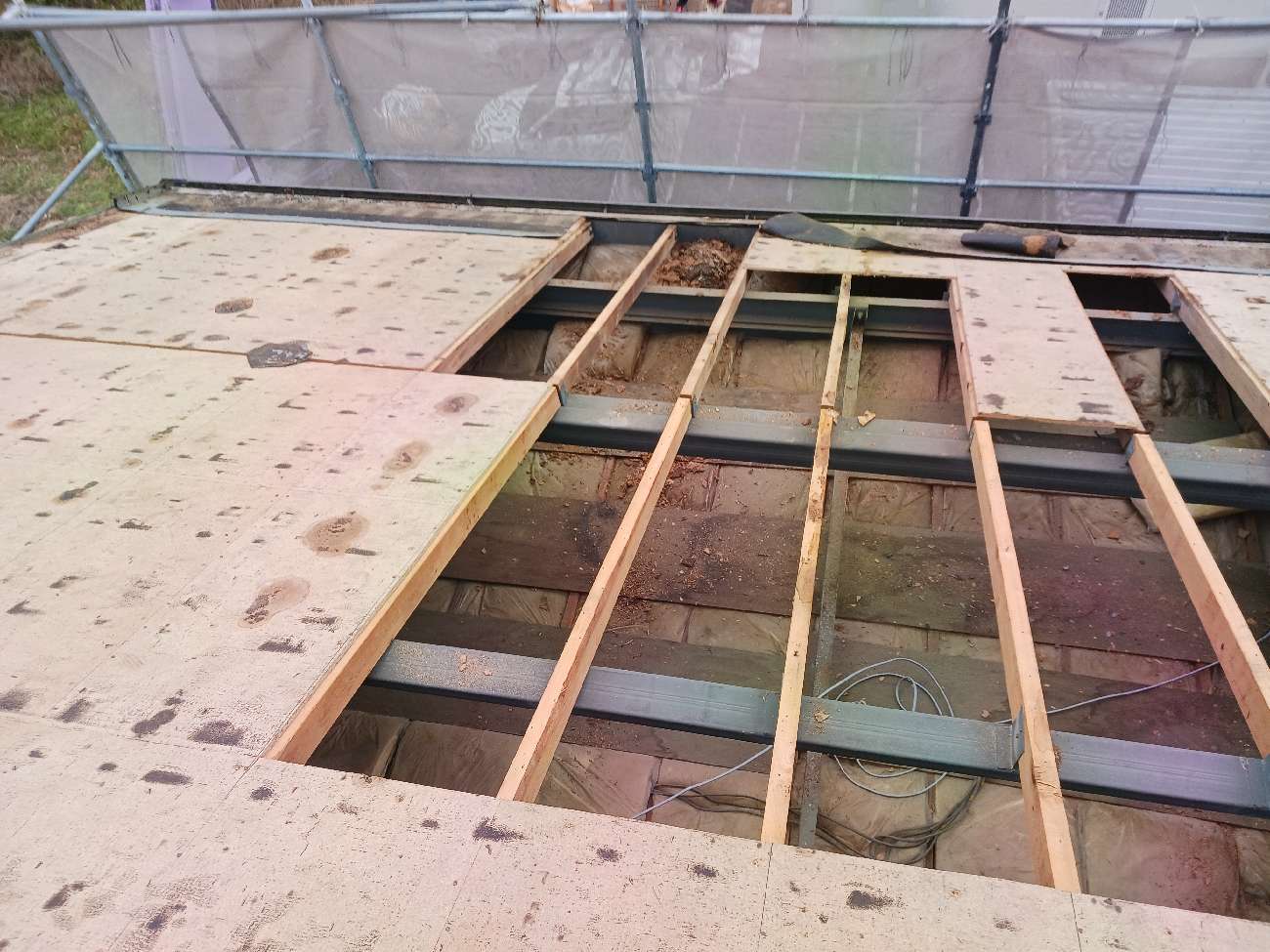 ⑥新たな屋根下地を施工していきます。