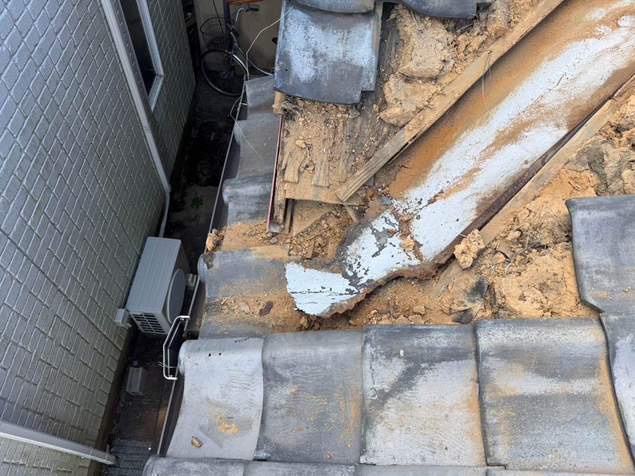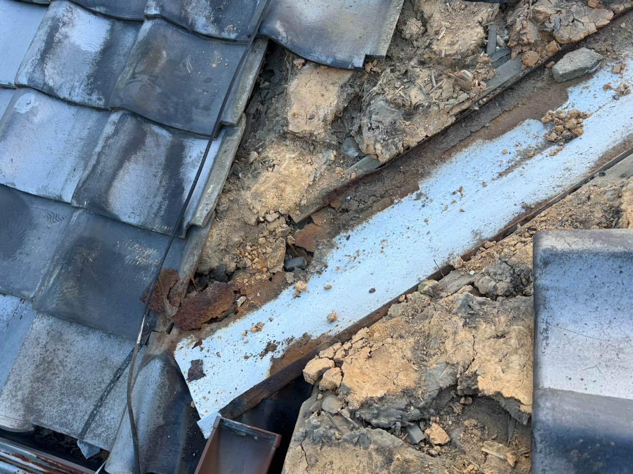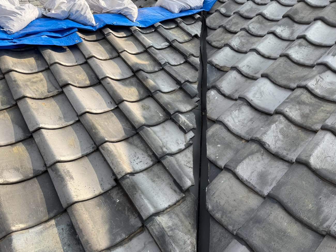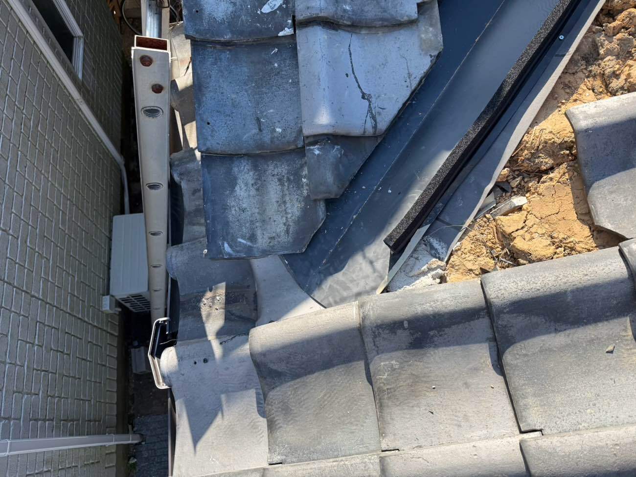 ⑪新たな、谷板金を施工し瓦との間になる部分に、シーラーテープ(隙間に貼ることにより板金と瓦の密着性を高め、外部からの雨水などの侵入をふせぎます。)を施工しました。