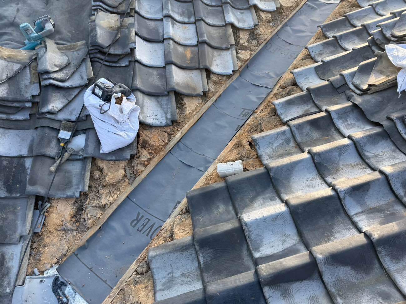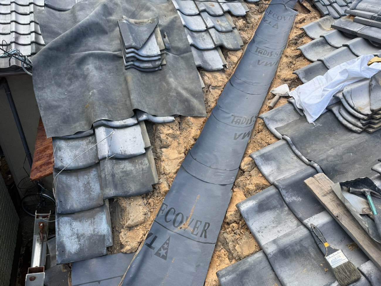 ③撤去後、ルーフィング(防水シート)を施工しました。