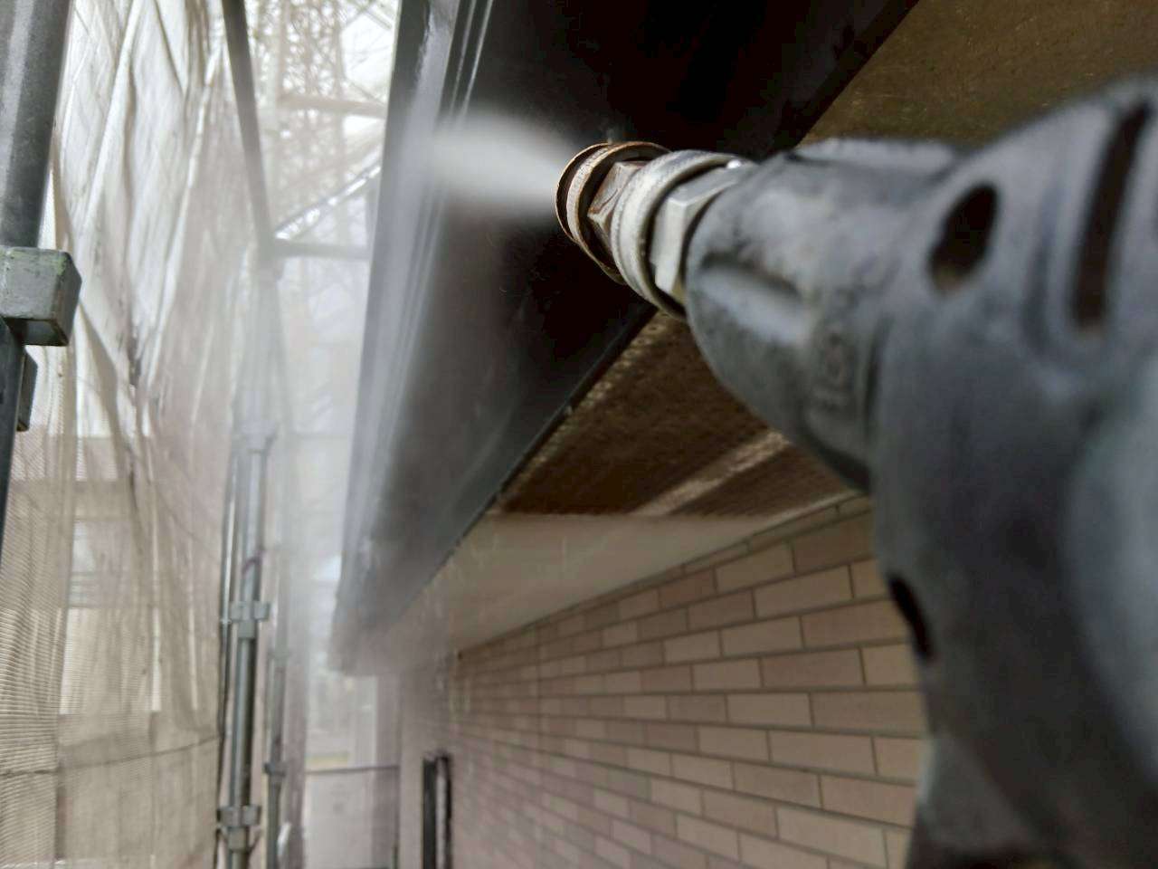 ⑨外壁塗装の前に洗浄していきます。