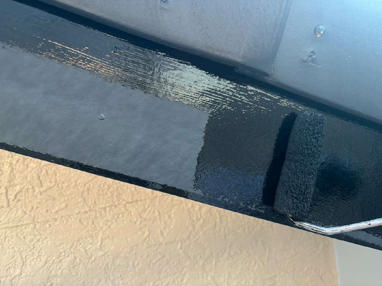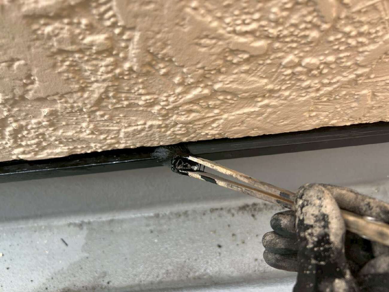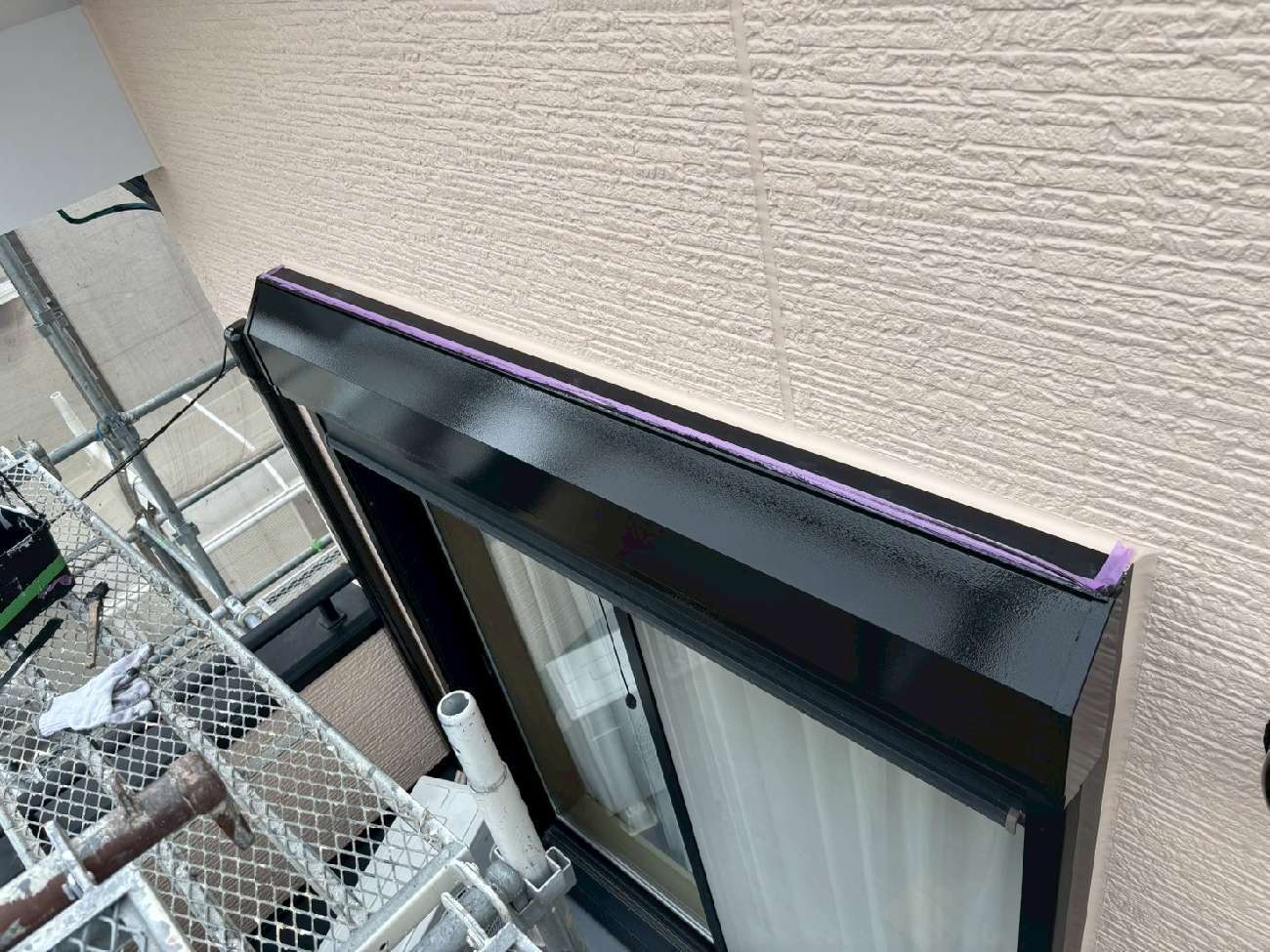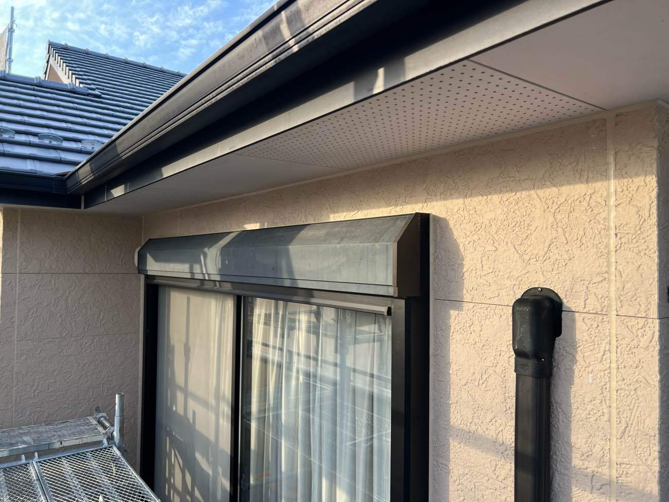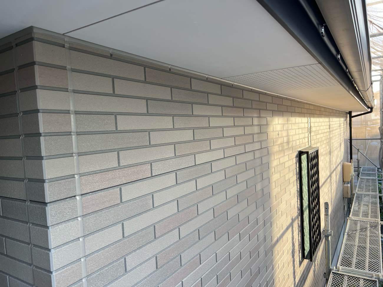 ⑦軒天との隙間にもコーキングを充填しました。
