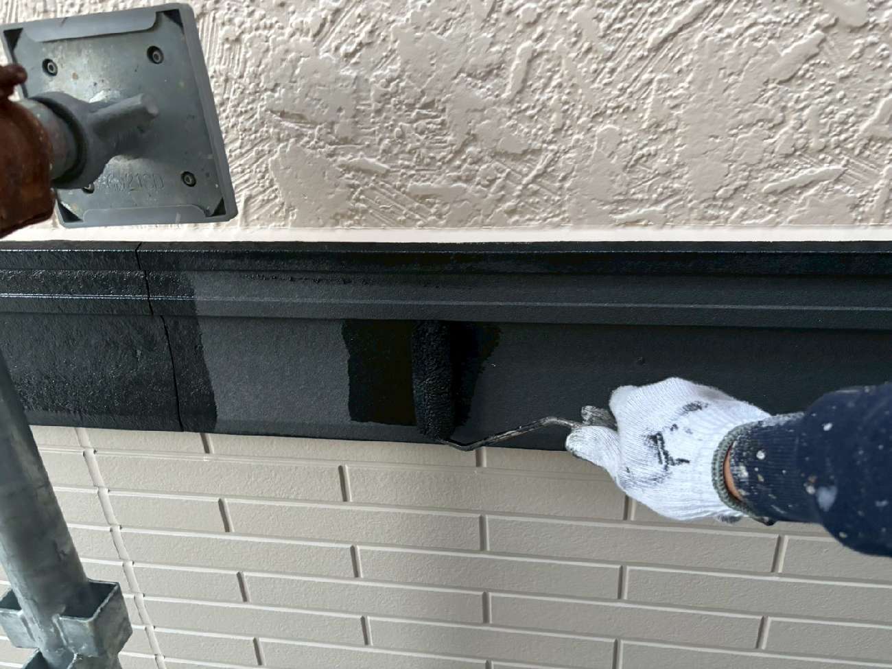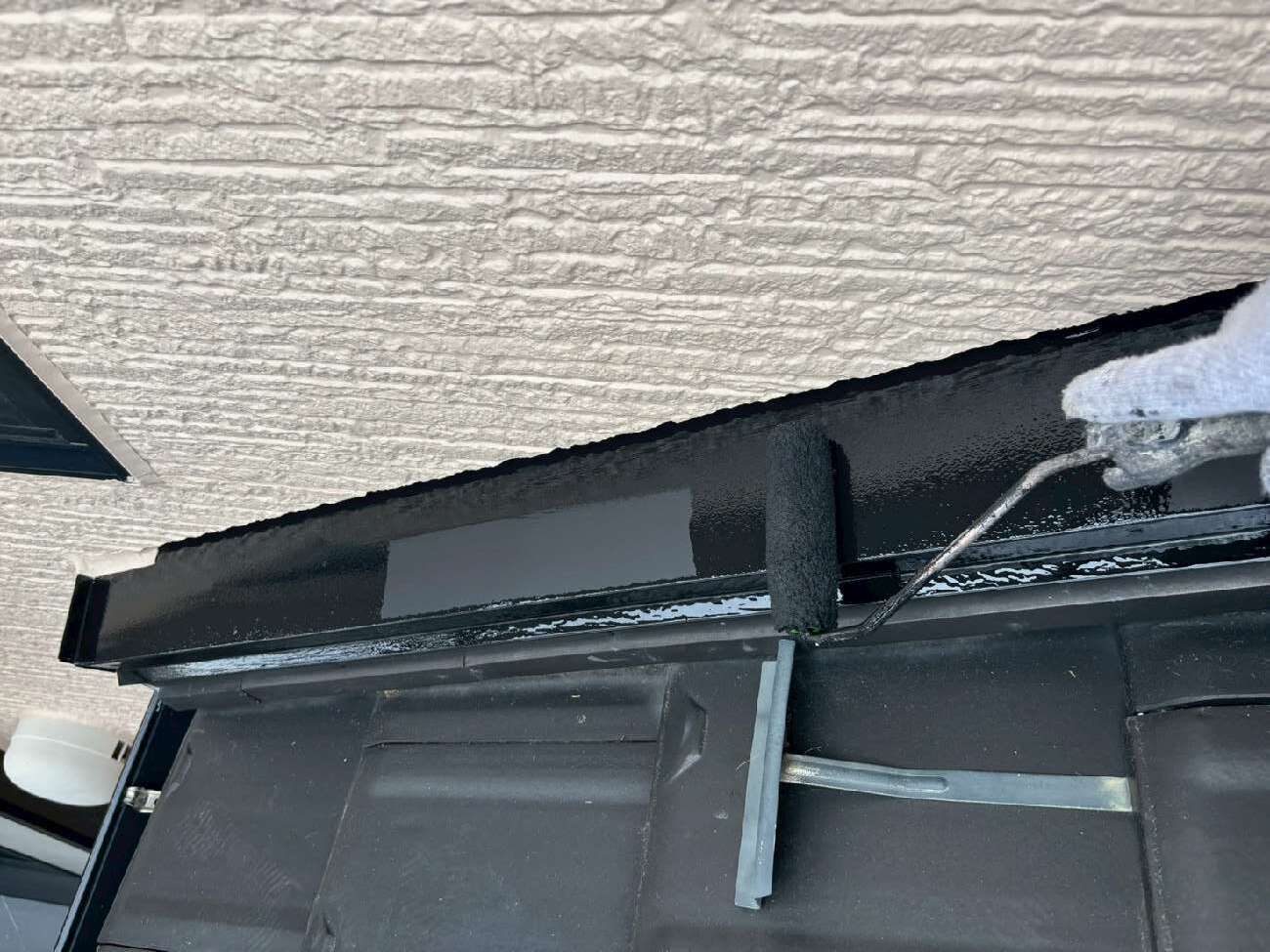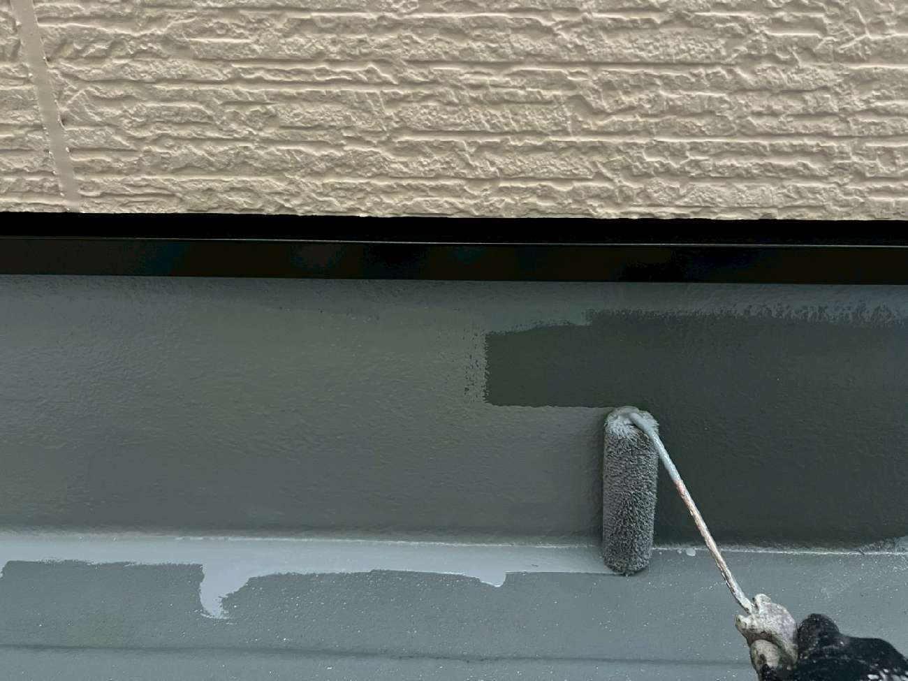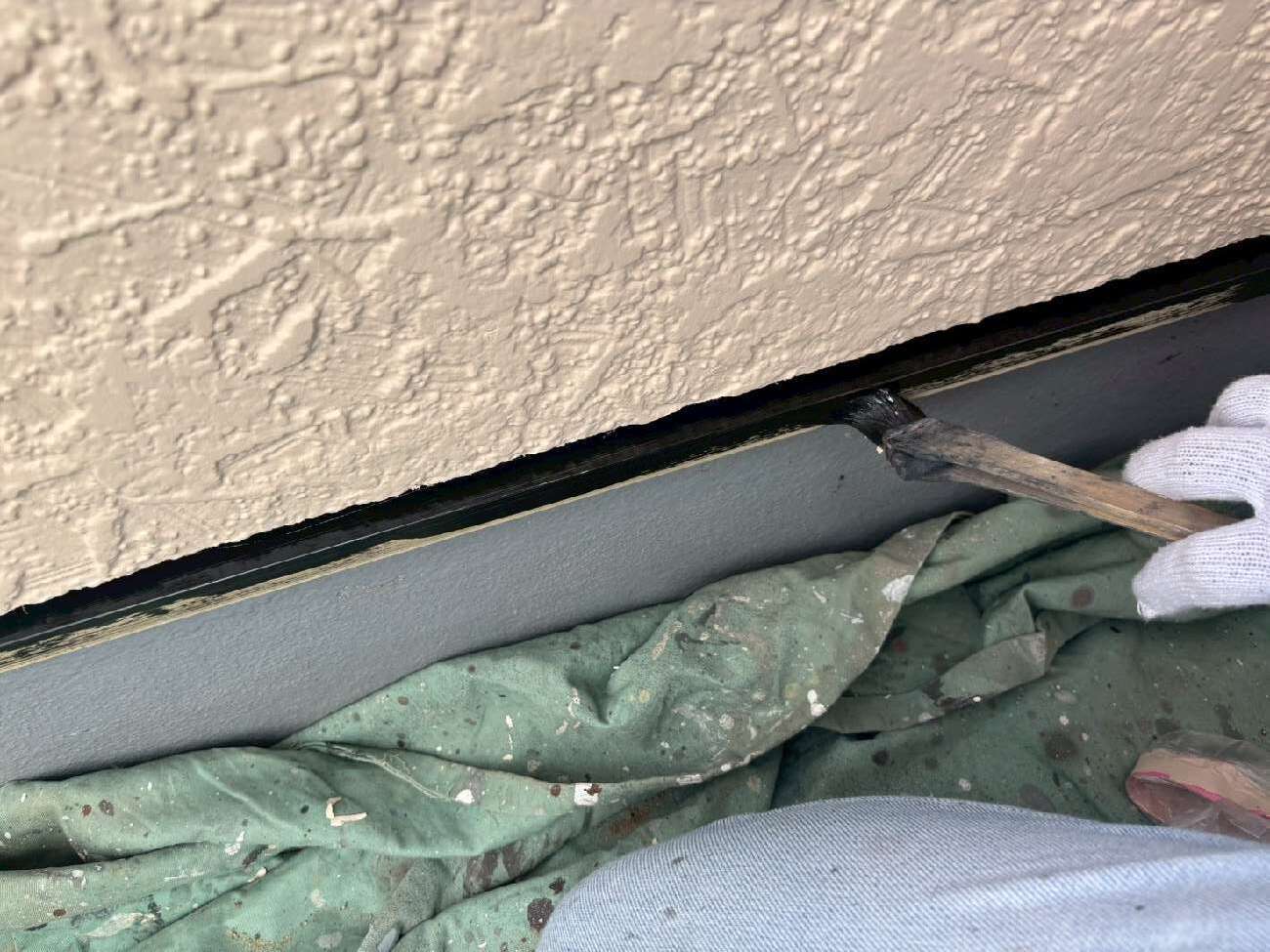 ㊳外壁下の水切りも刷毛で丁寧に塗装していきます。