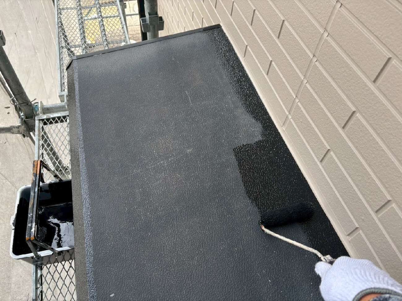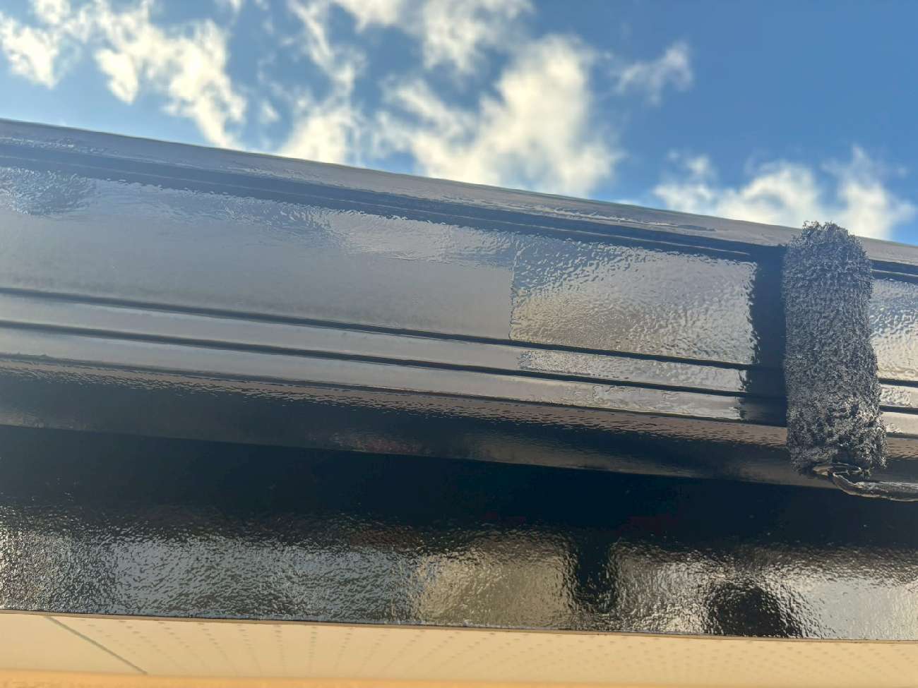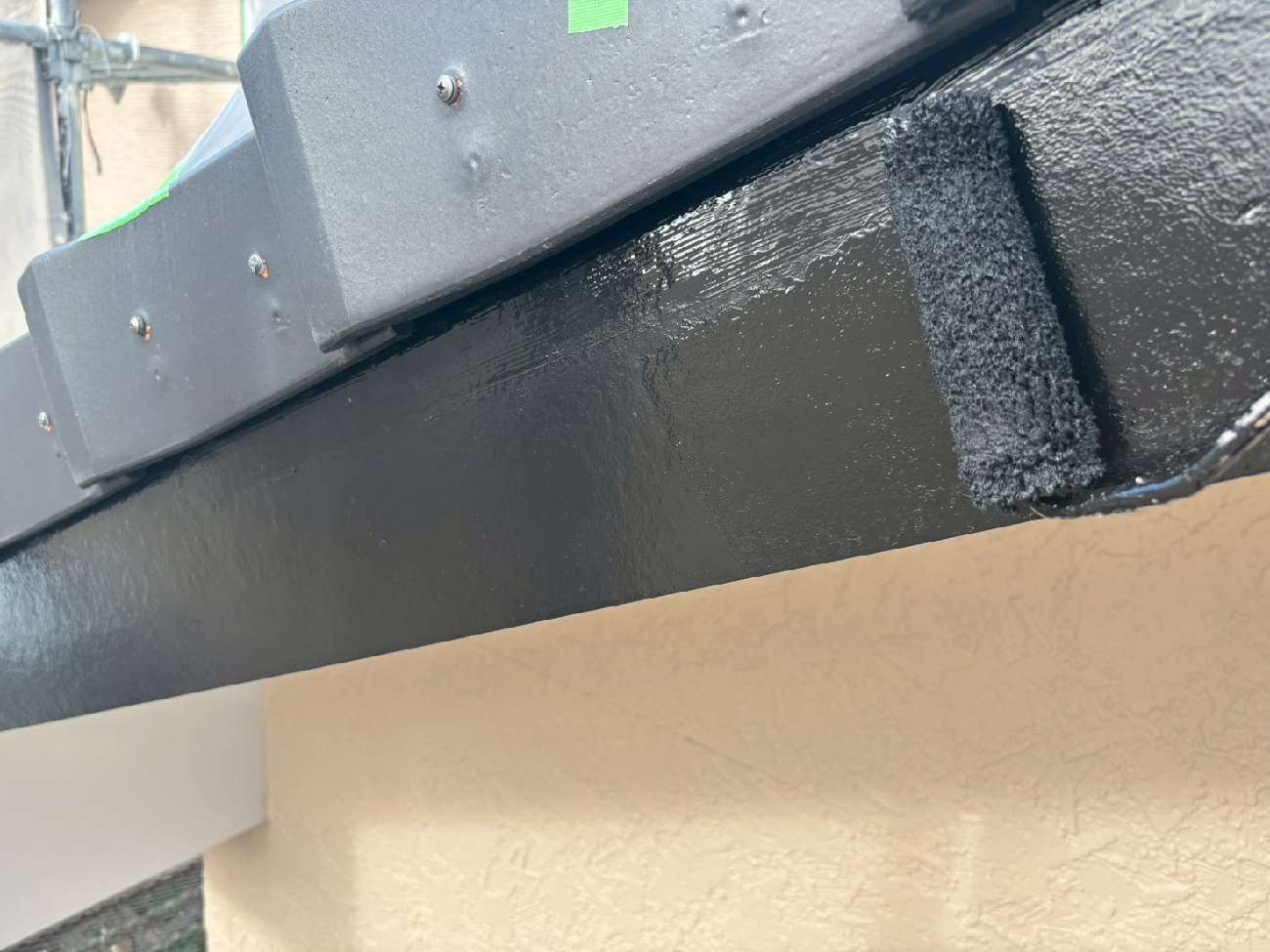 ㊳外壁下の水切りも刷毛で丁寧に塗装していきます。