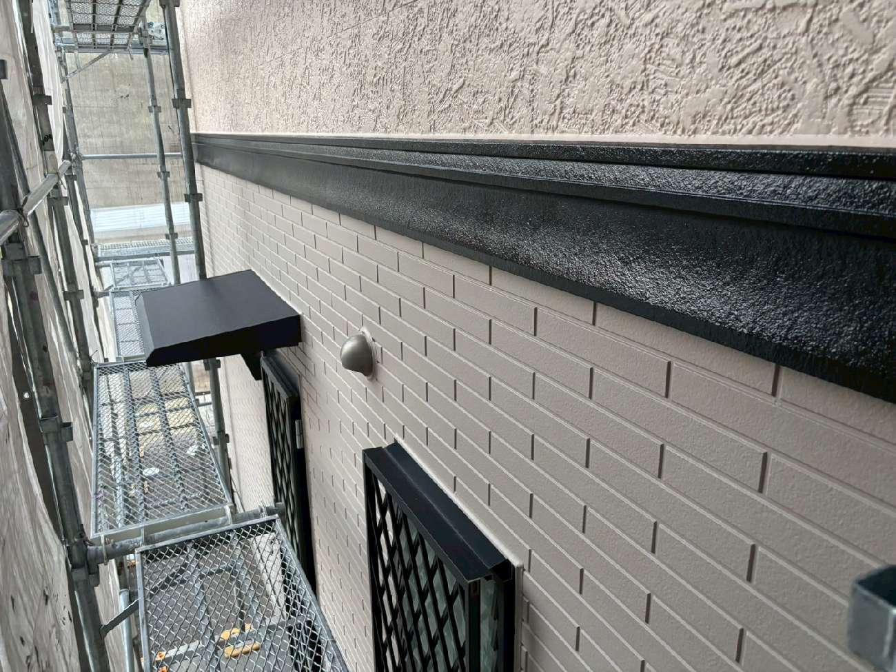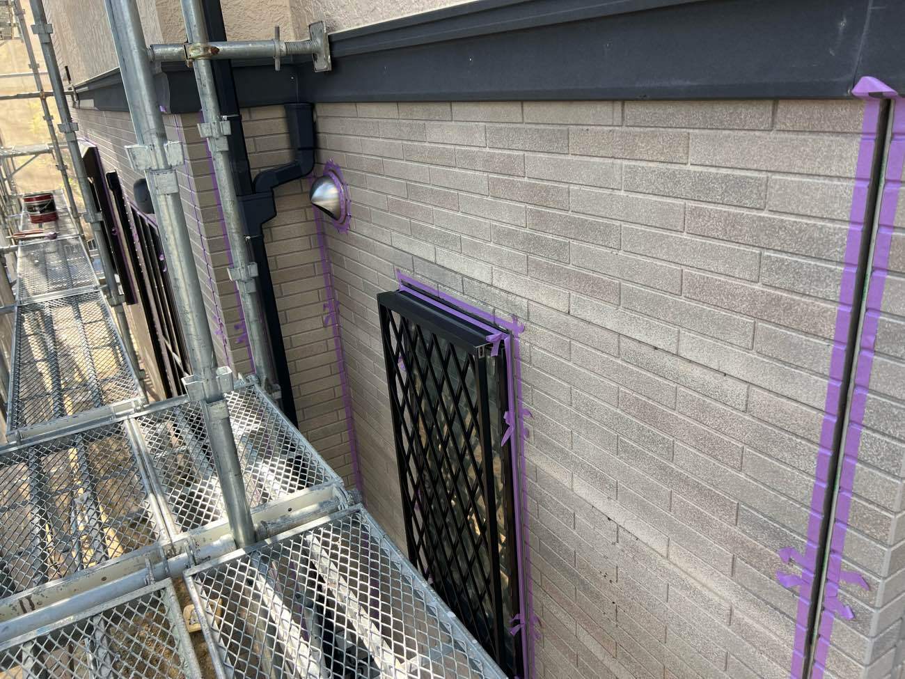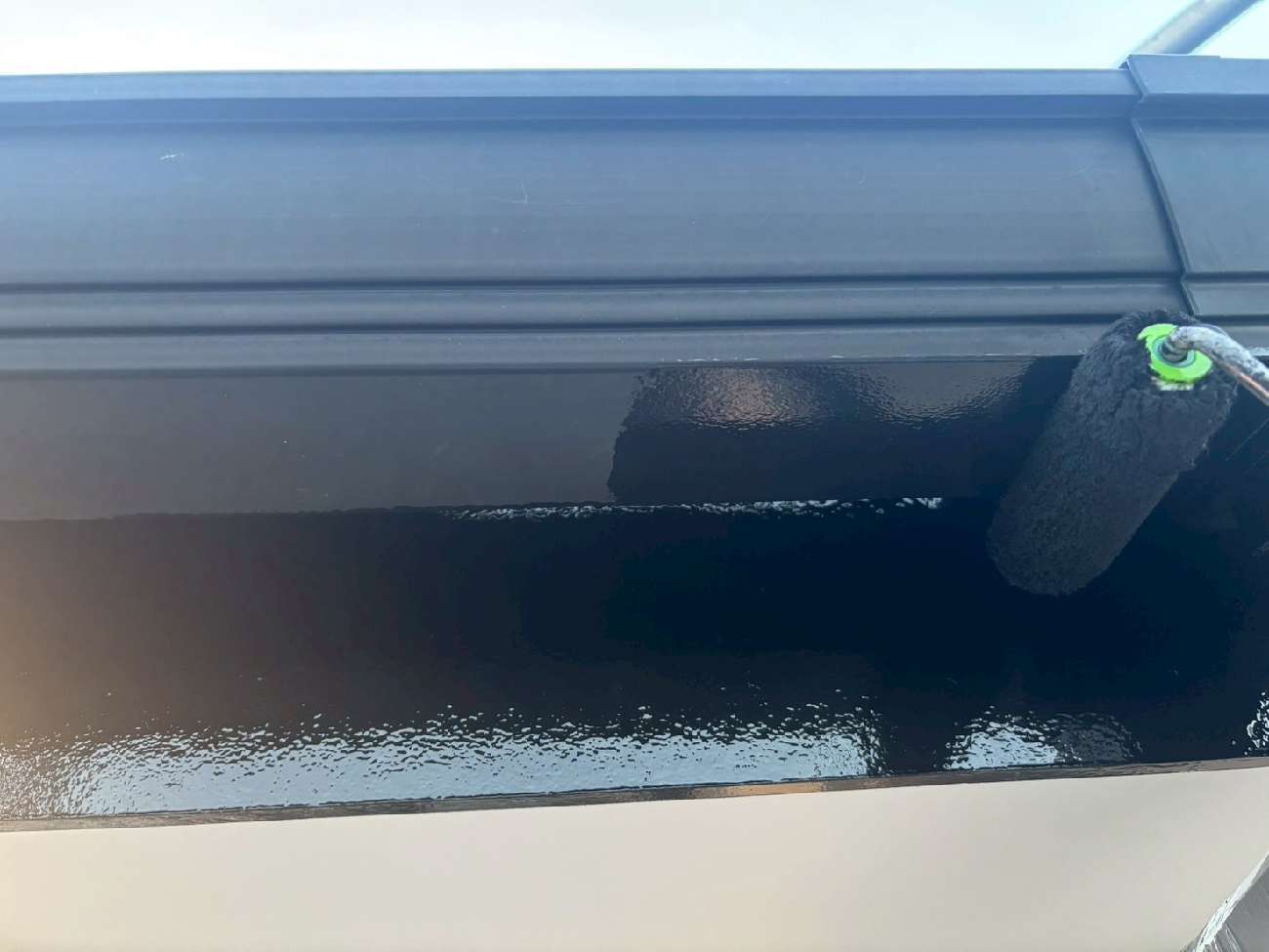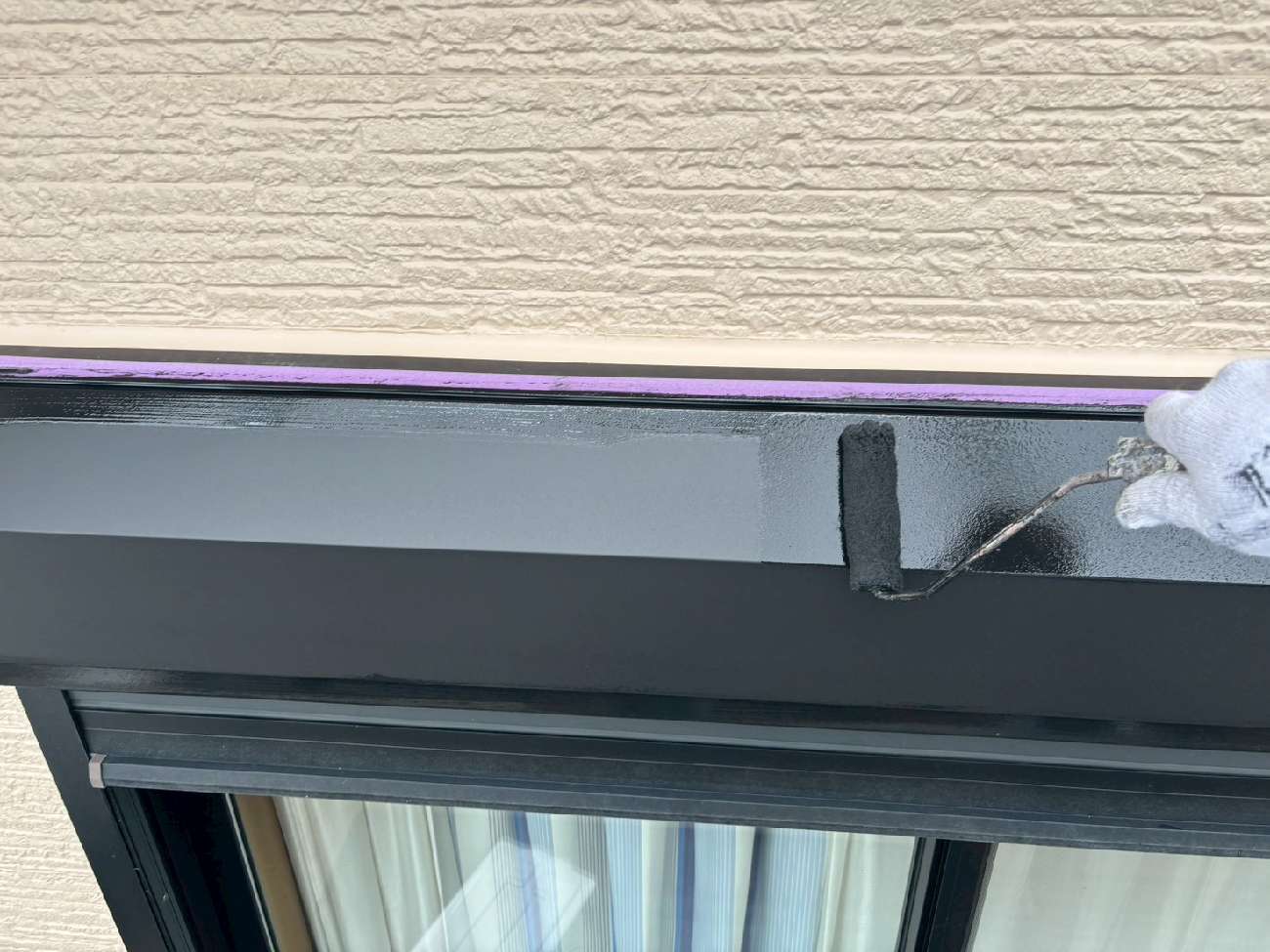 ㊳外壁下の水切りも刷毛で丁寧に塗装していきます。