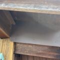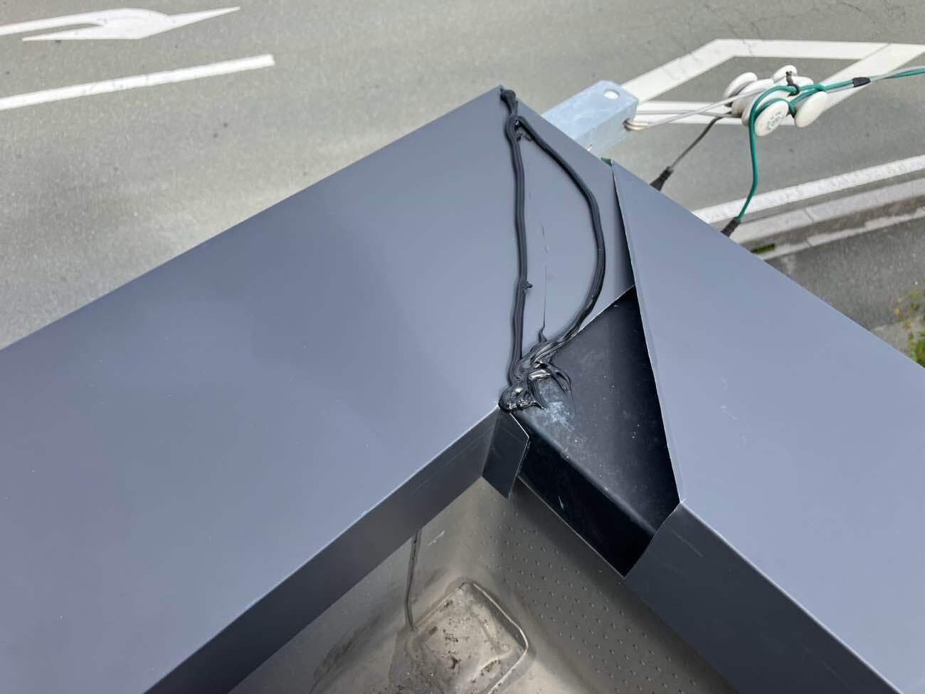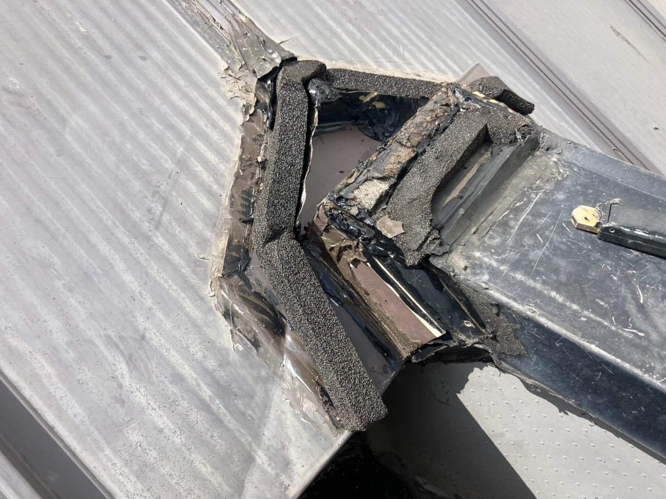 ①既存の板金を解体し、シーリングテープを貼っていきます。(隙間を埋めて漏れを防ぎます。)