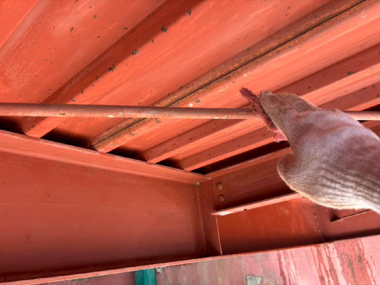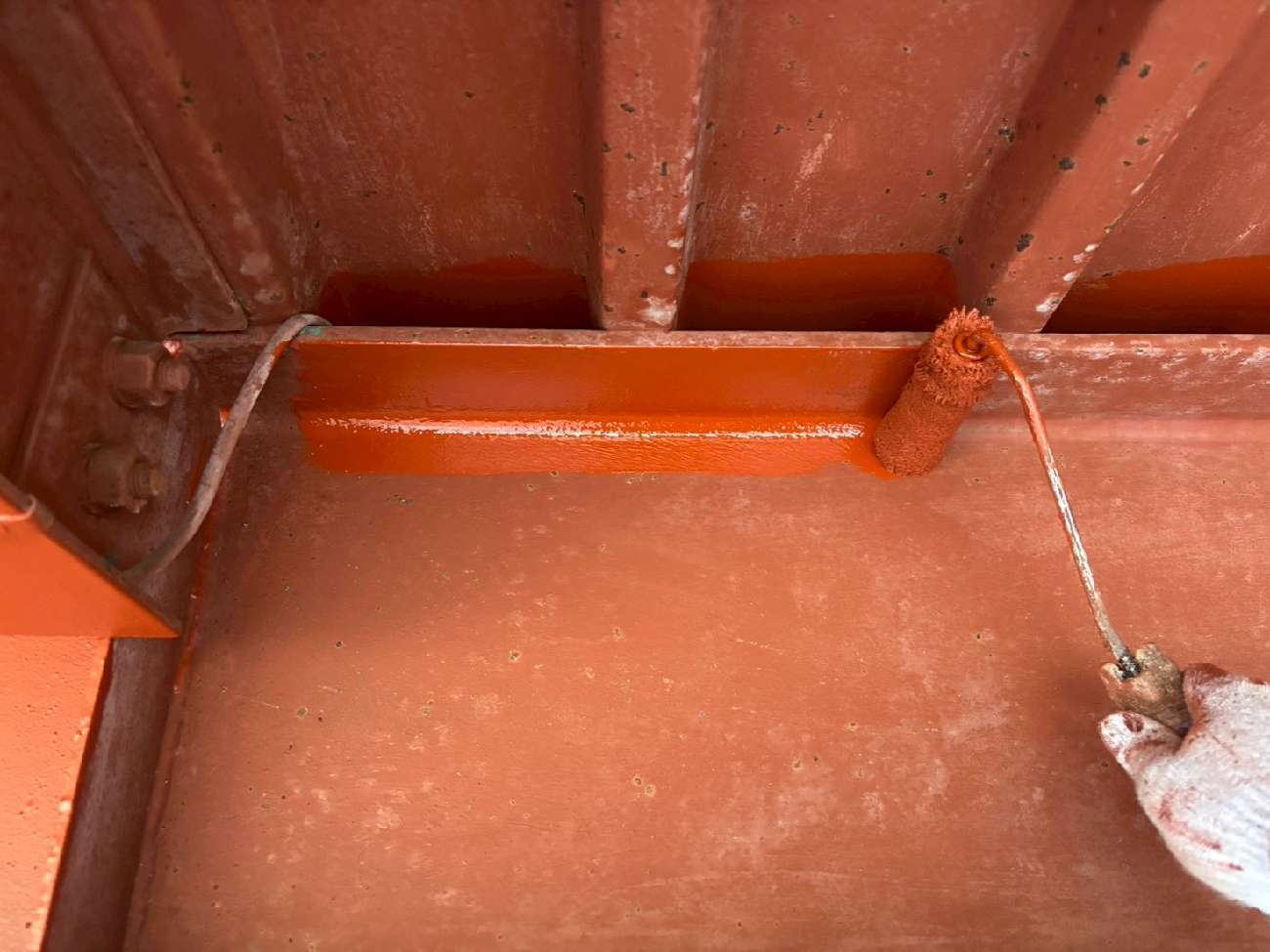 ⑦柱も塗装し、錆止め塗装が完了しました。