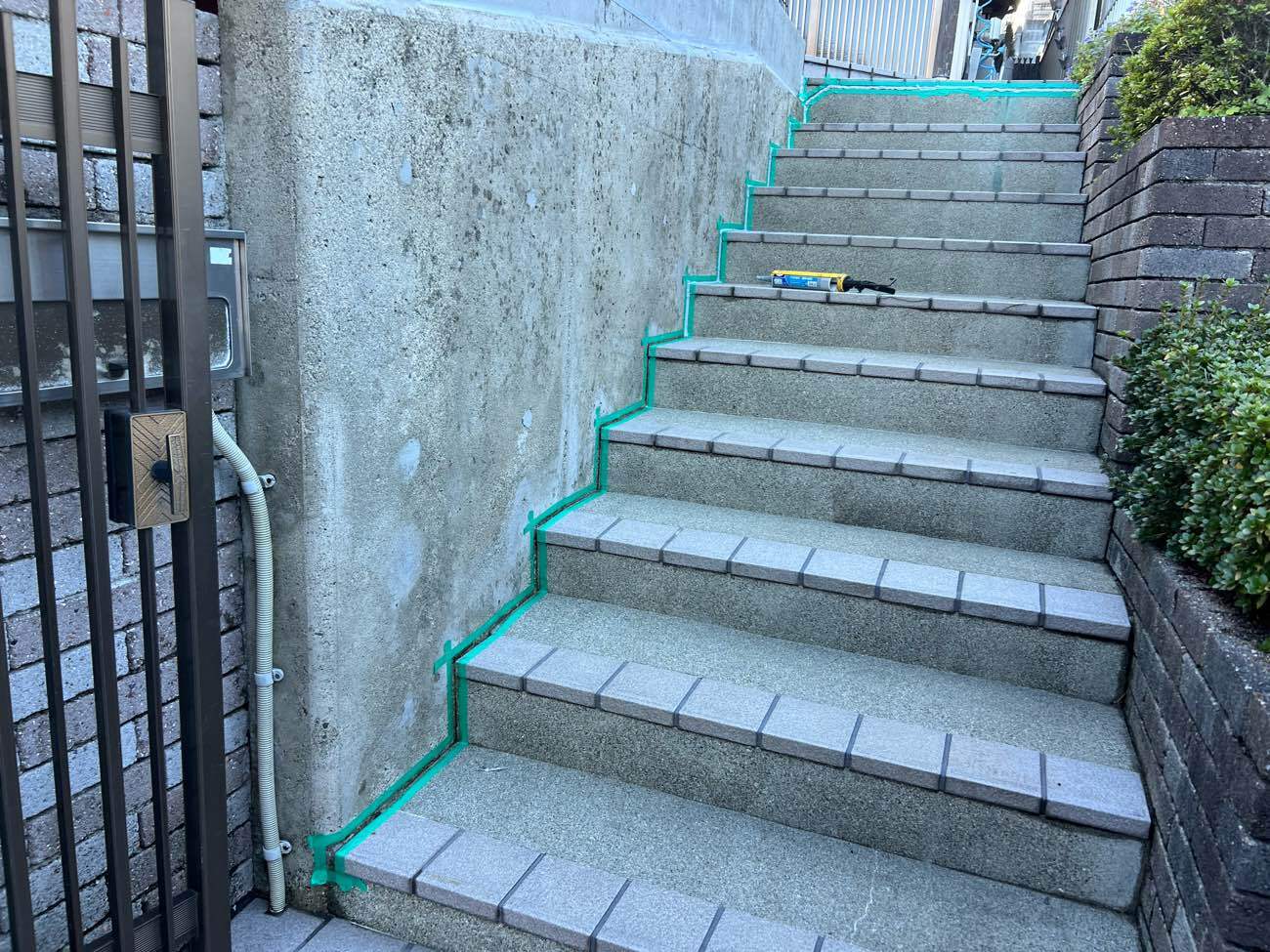 ⑫コーキングがはみ出さないようにマスキングテープを貼っていきます。