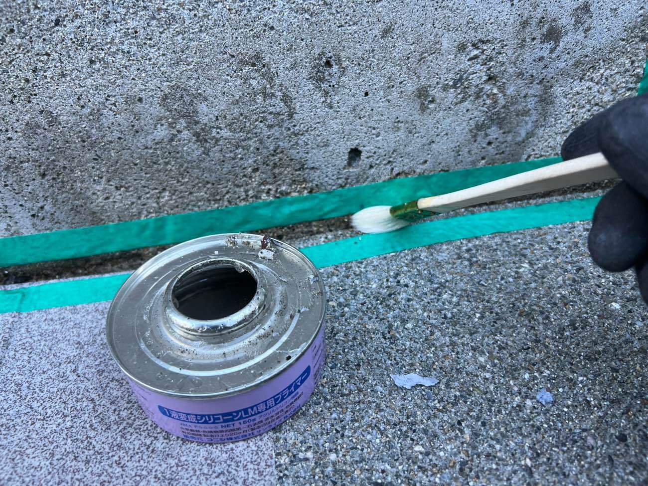 ⑯コーキングの密着性を高めるためにプライマー(下地材)を塗布していきます。