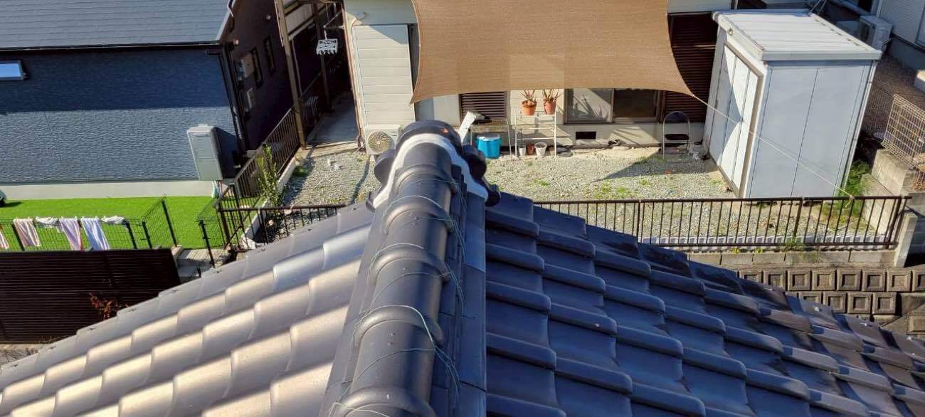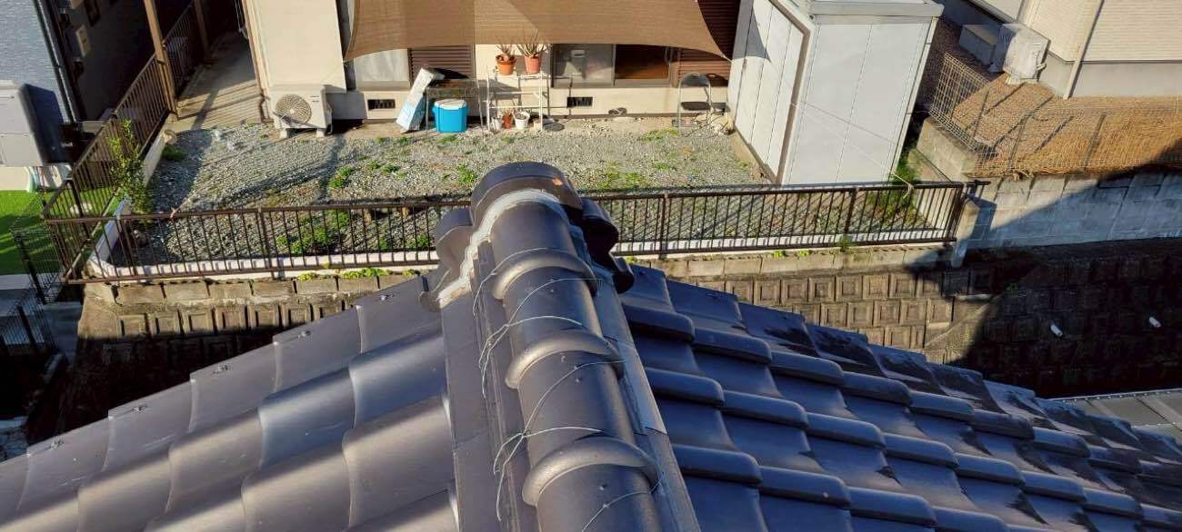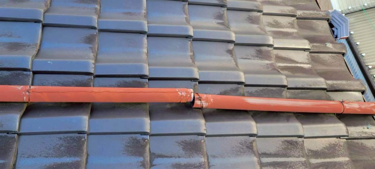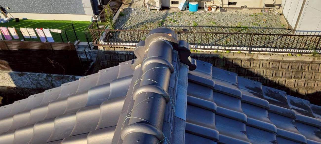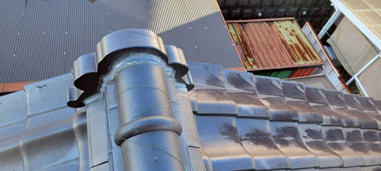 ㉗鬼瓦漆喰を固定するためコーキングを充填し、下地補強を行っていきます。