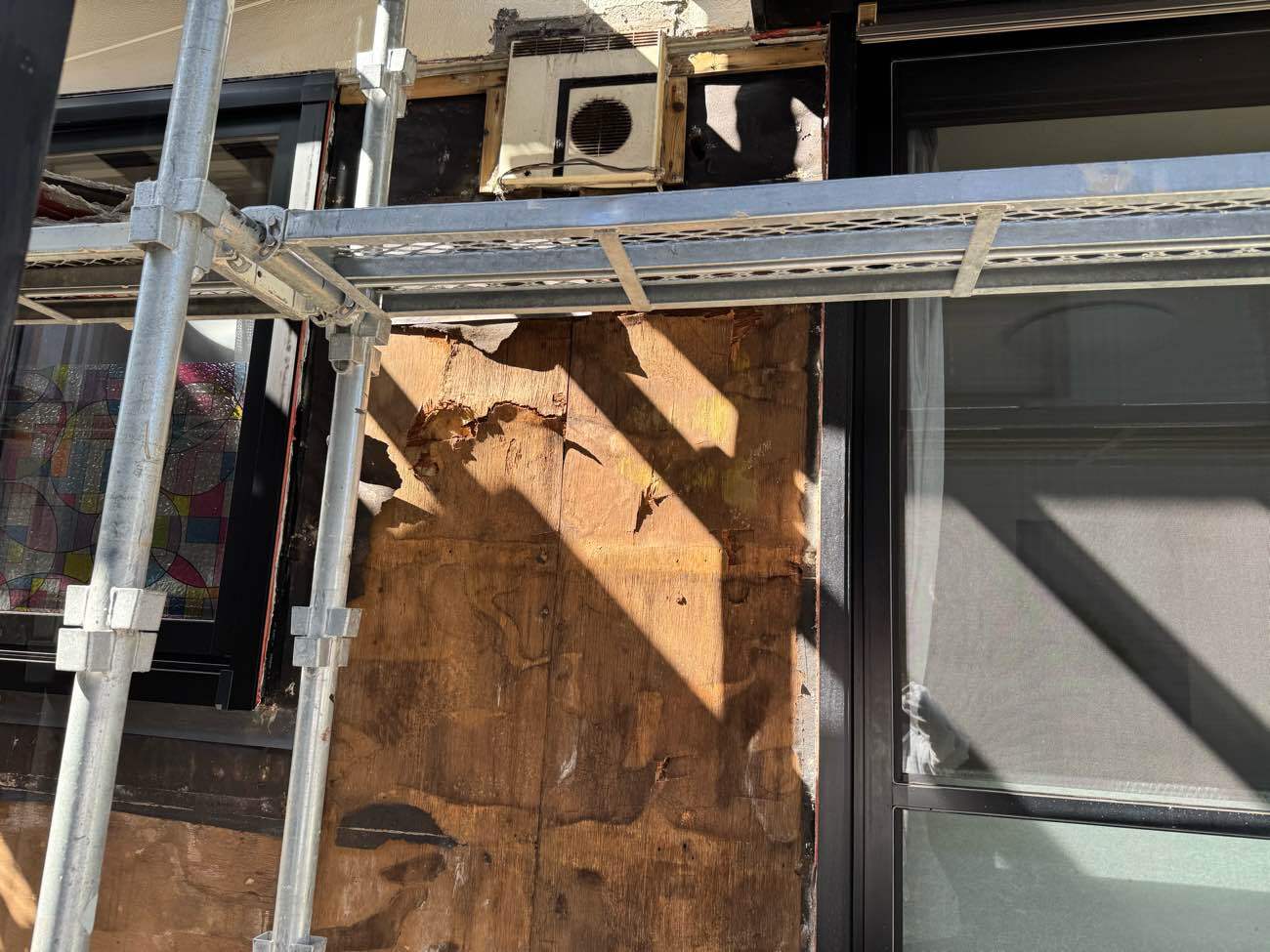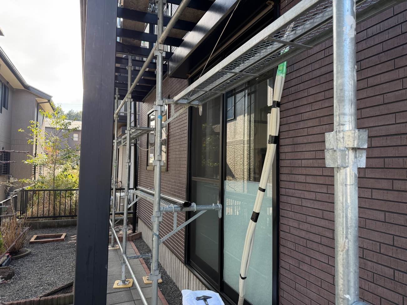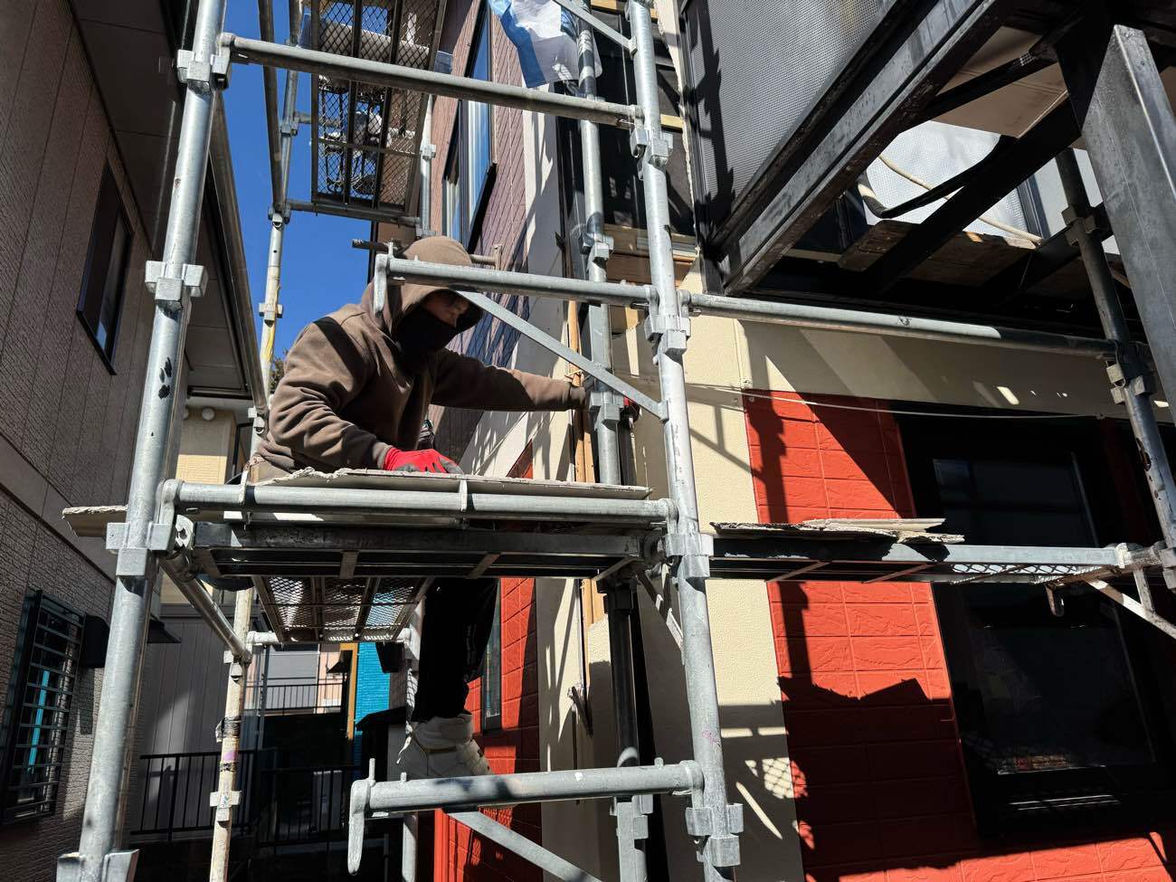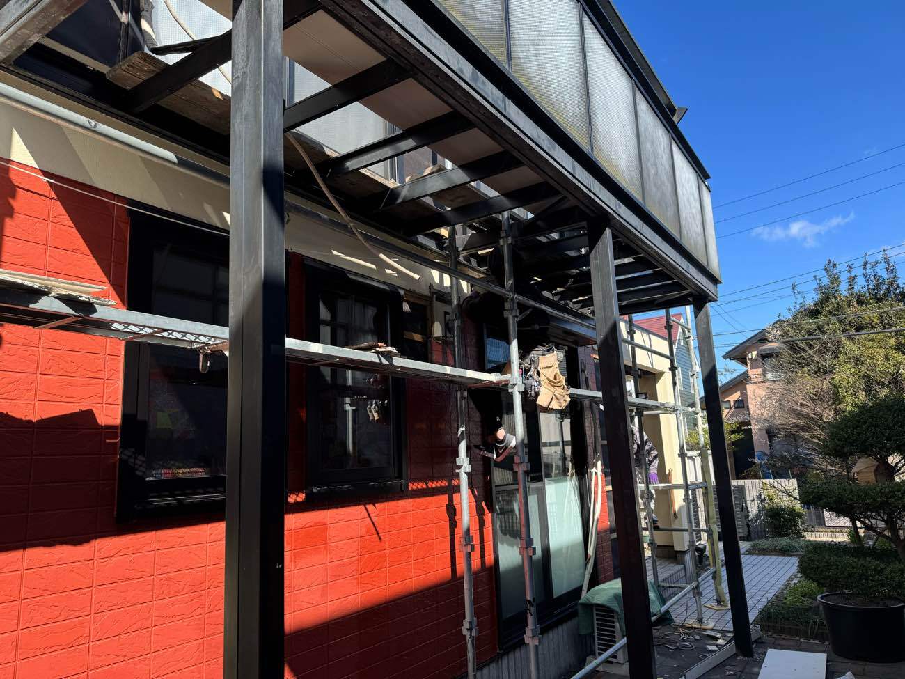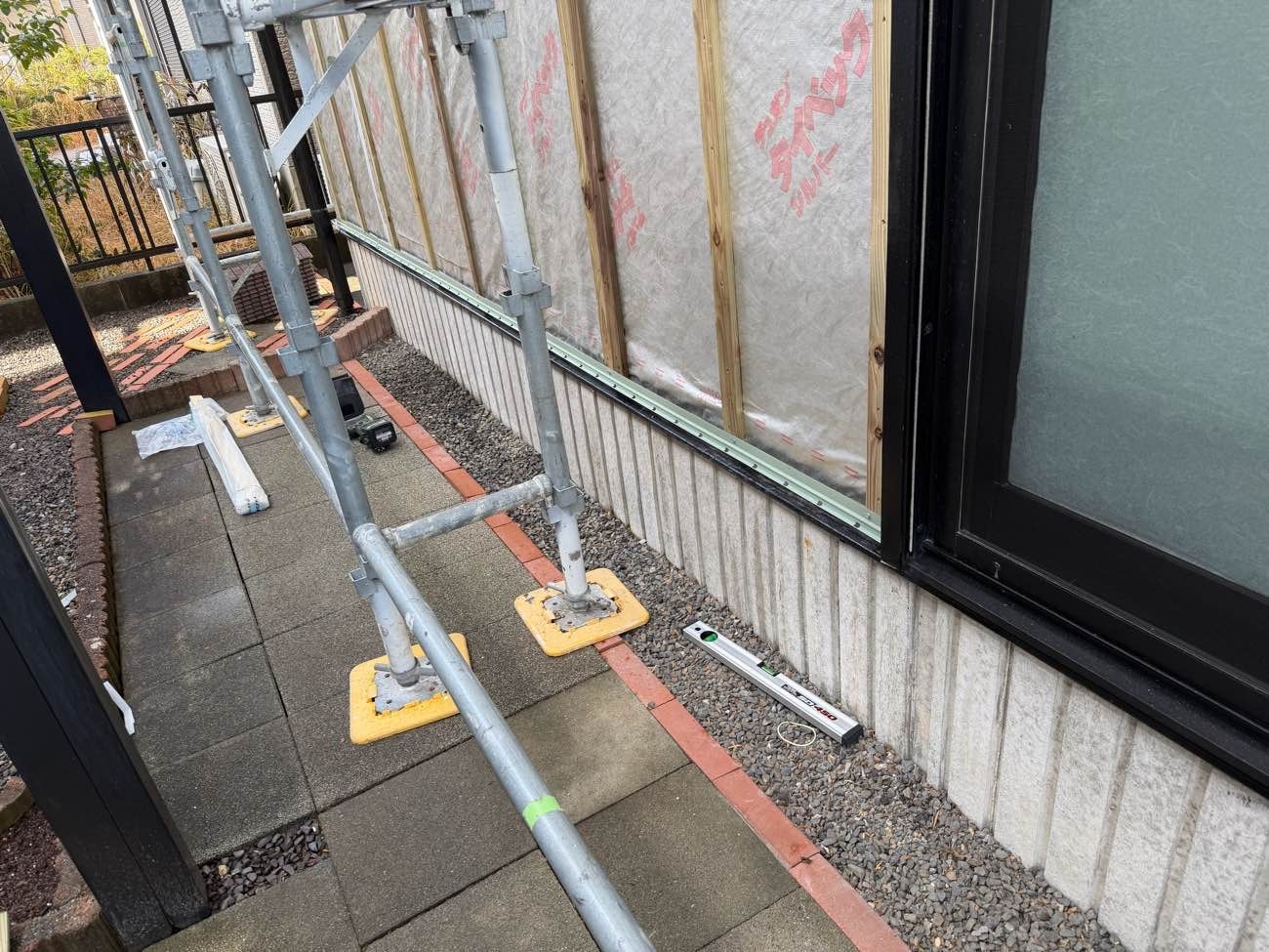 ③足場を組み立て、外壁を解体していきます。