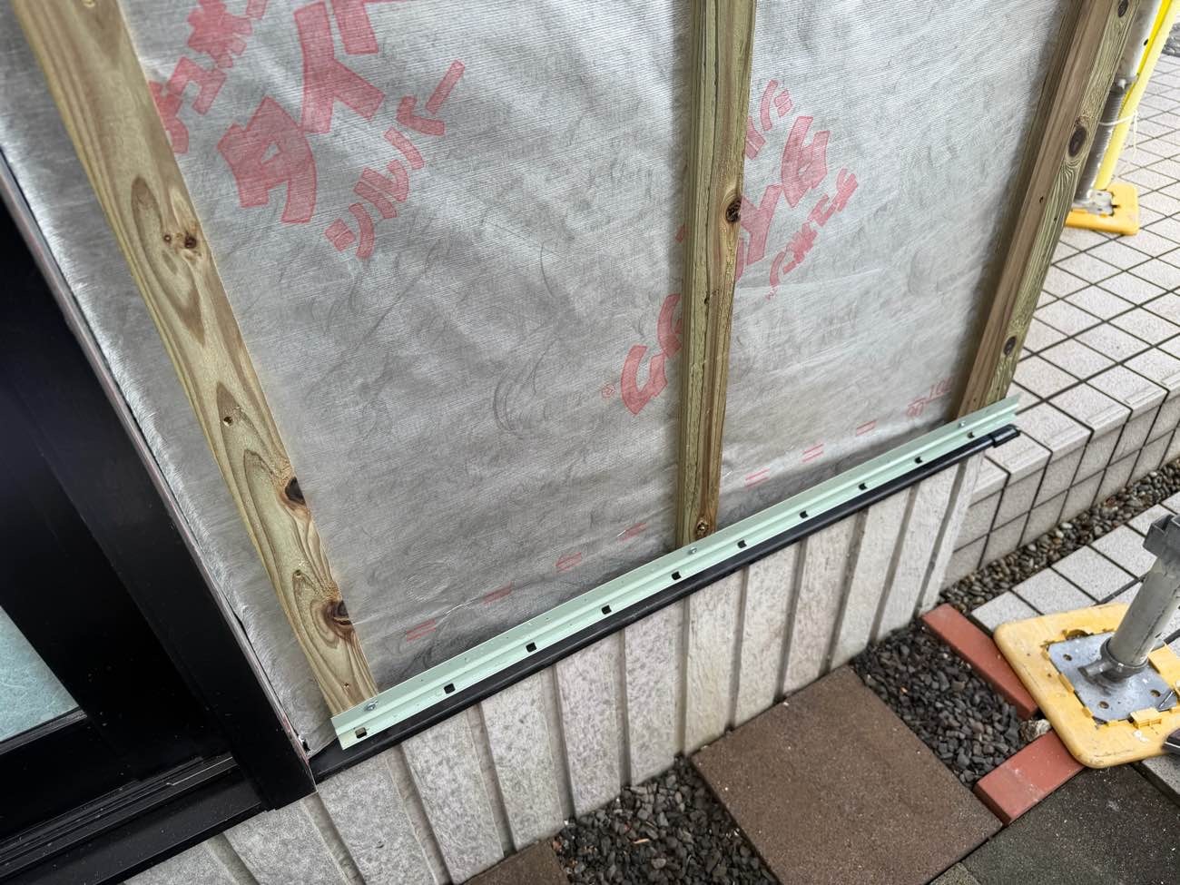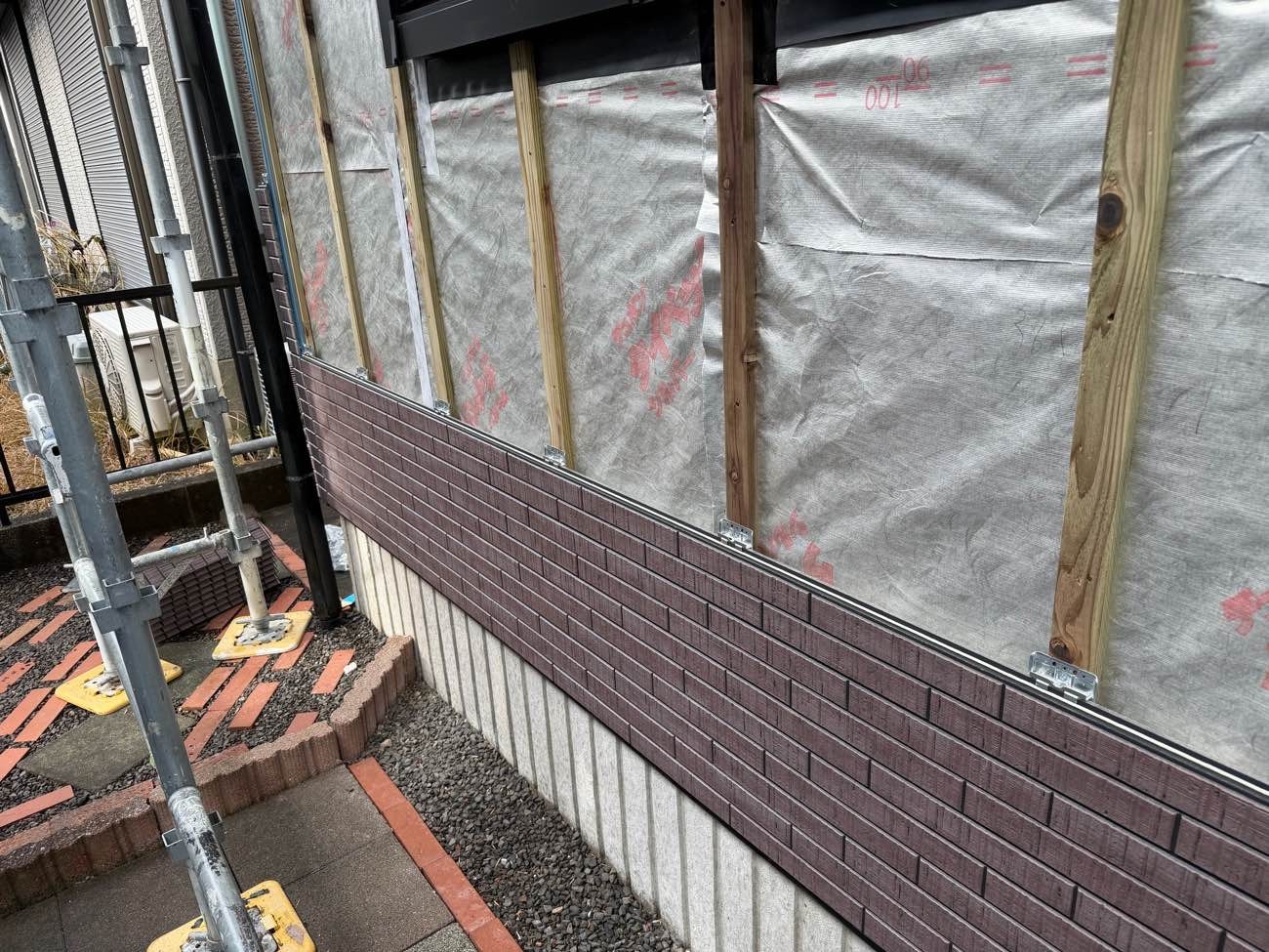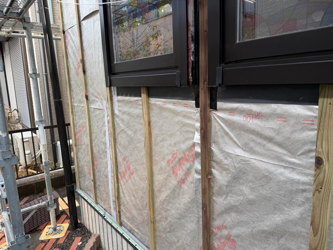 ⑪防水シートを貼り、胴縁を施工しました。