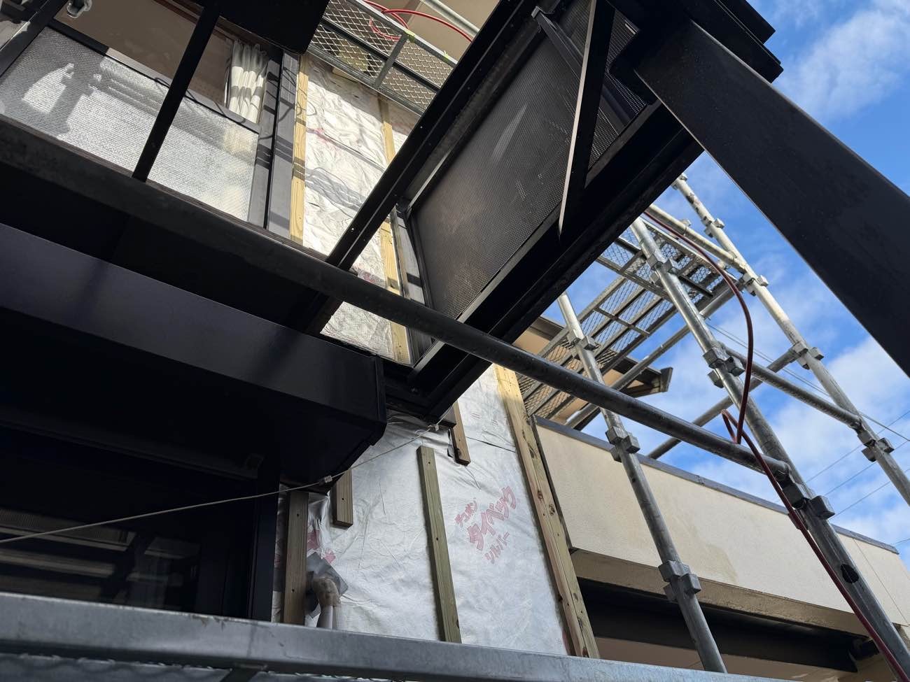 ⑫2階も同様に、防水シートを貼り胴縁を施工しました。