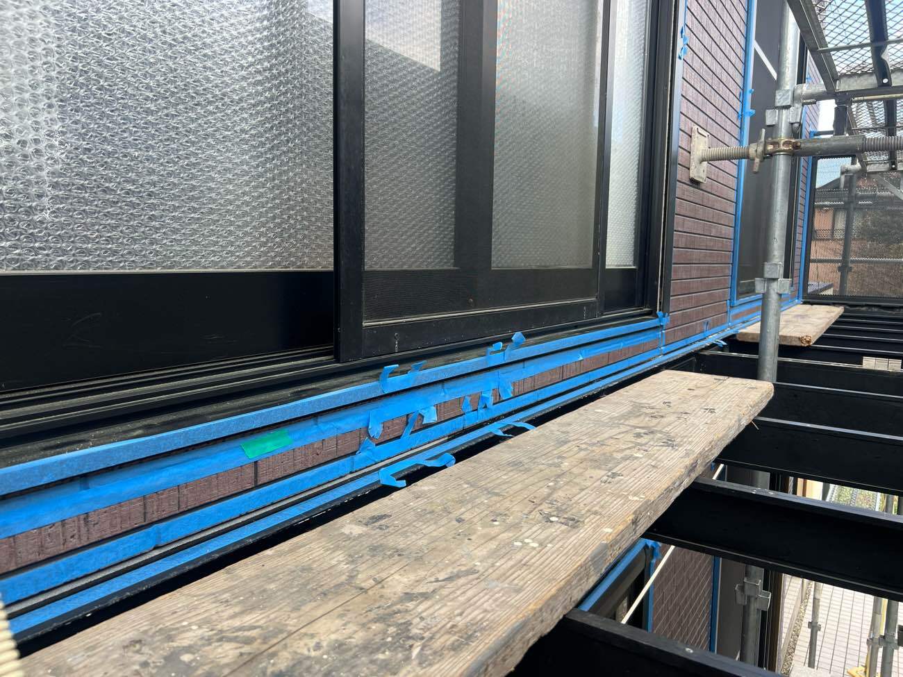 ㉒コーキングの充填していく箇所にマスキングテープを貼っていきます。