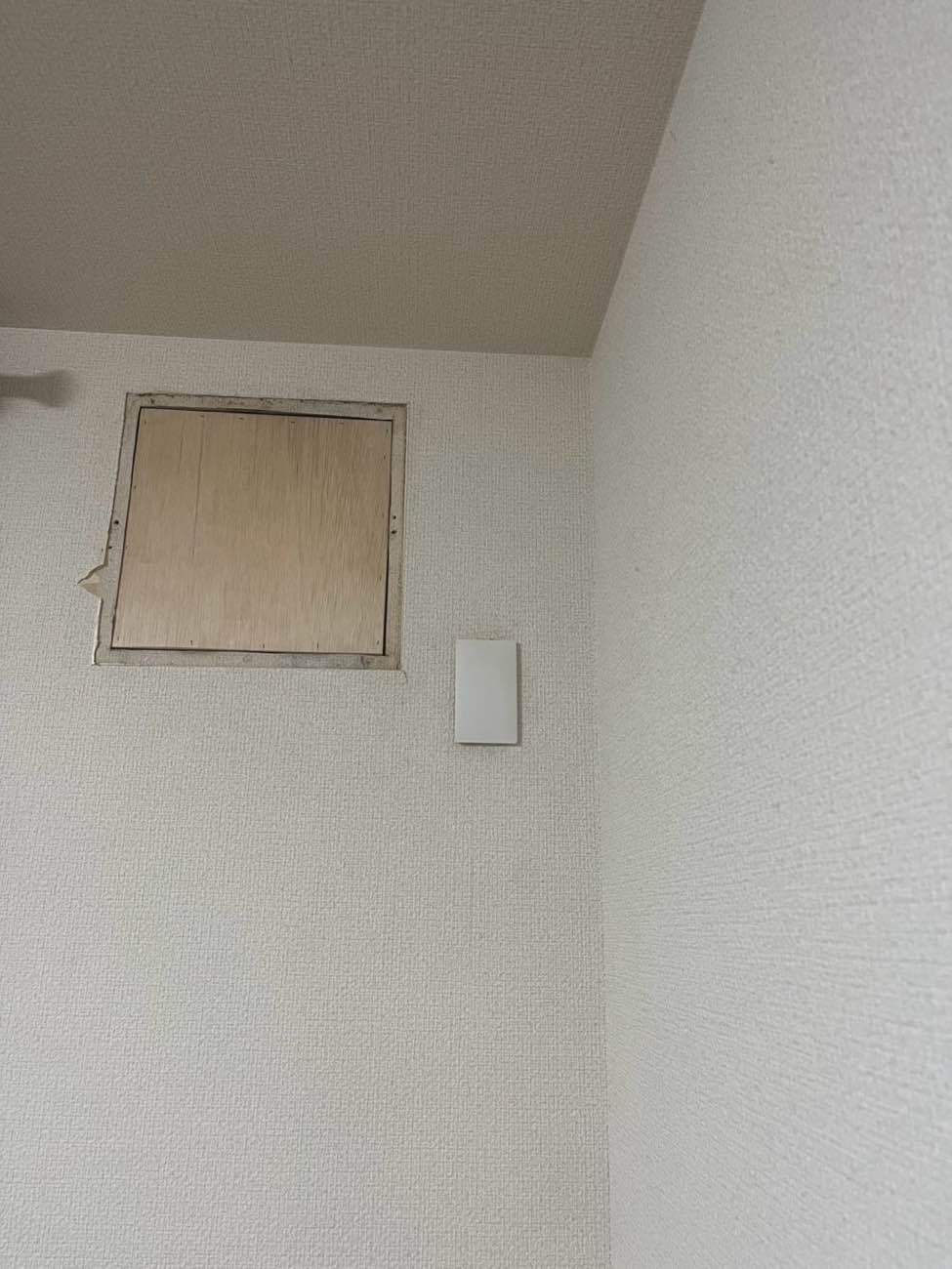 ㊲換気扇をふさいだ所に化粧板を施工しました。