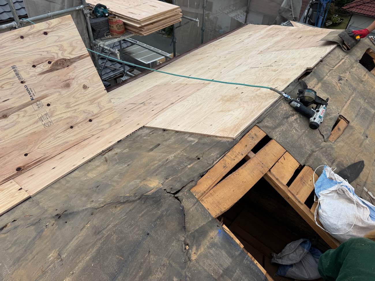 ⑪新しい下地合板を施工していきます。