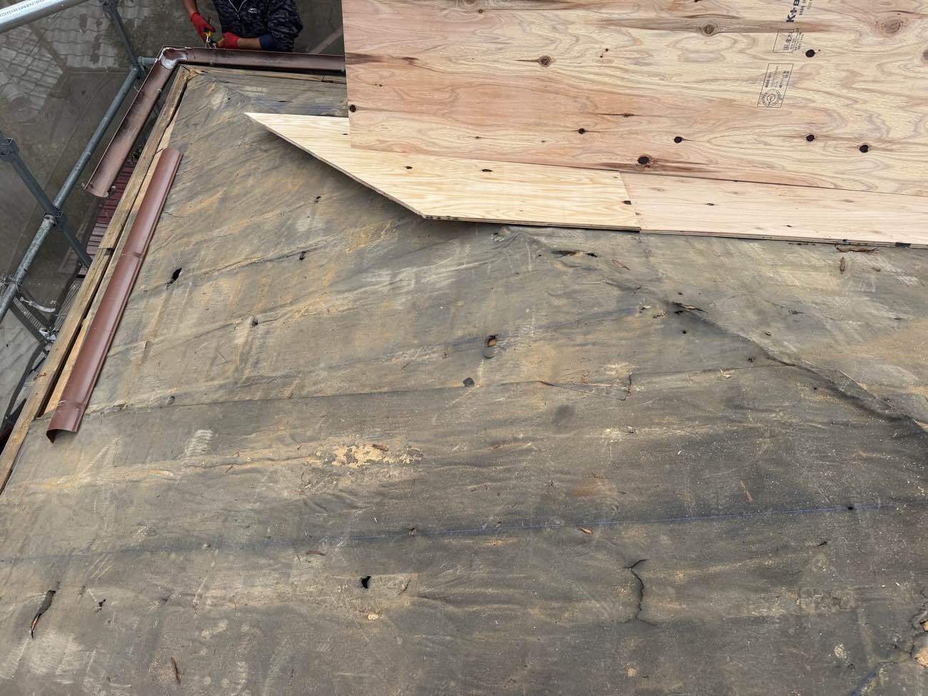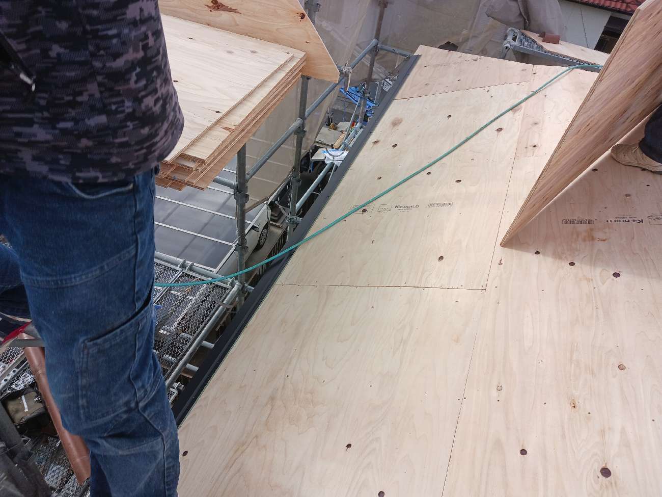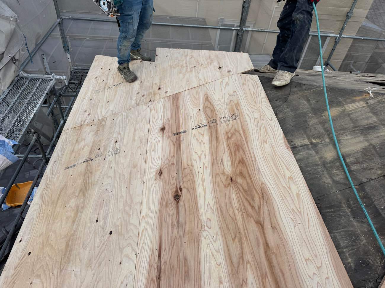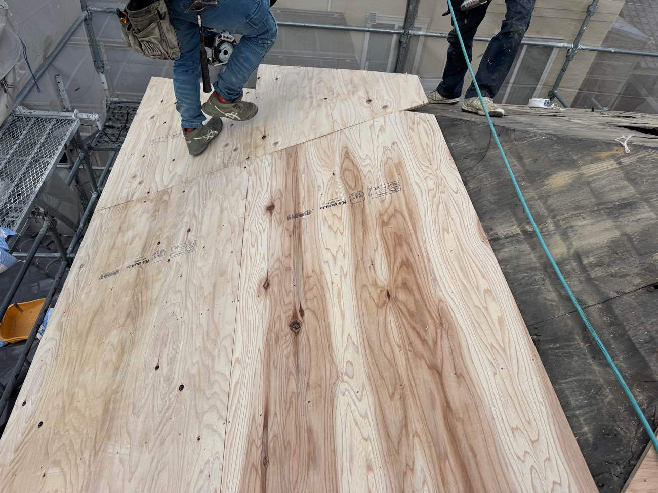 ⑫新しい下地合板を施工していきます。