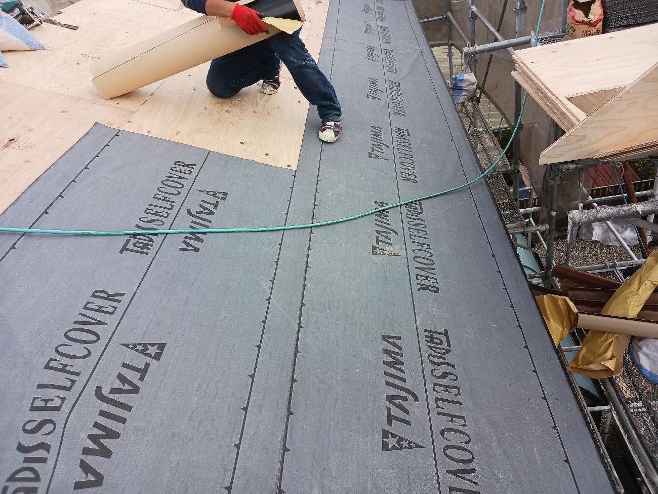 ⑳防水シートを貼っていきます。