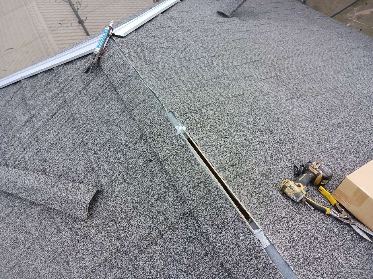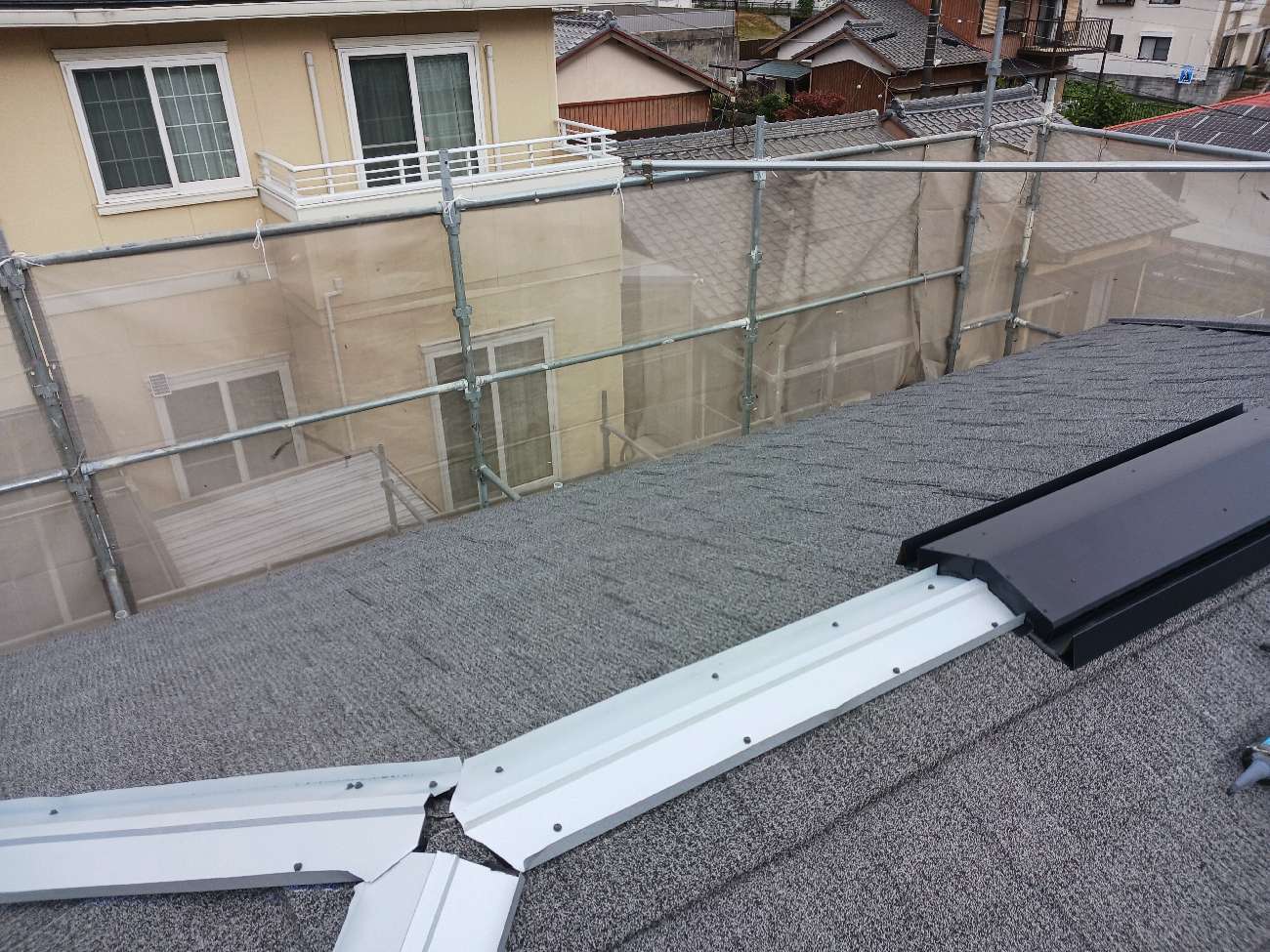 ㉙棟・隅棟下地施⼯後、換気棟を施⼯しました。