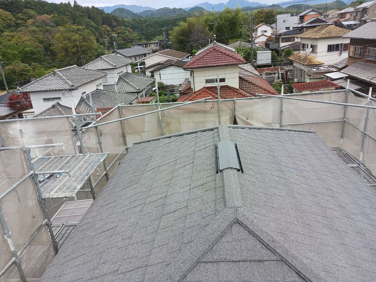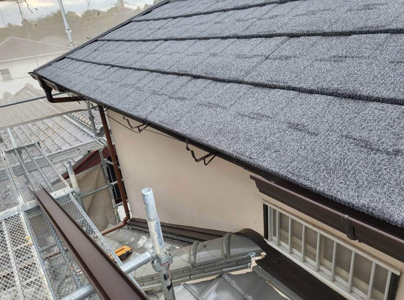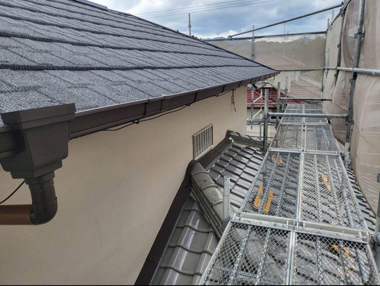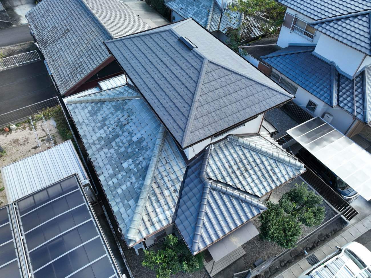 繋ぎ⽬部分にはタッチアップ材(屋根材の粒⼦)を施⼯し、⽬⽴たなくしました。