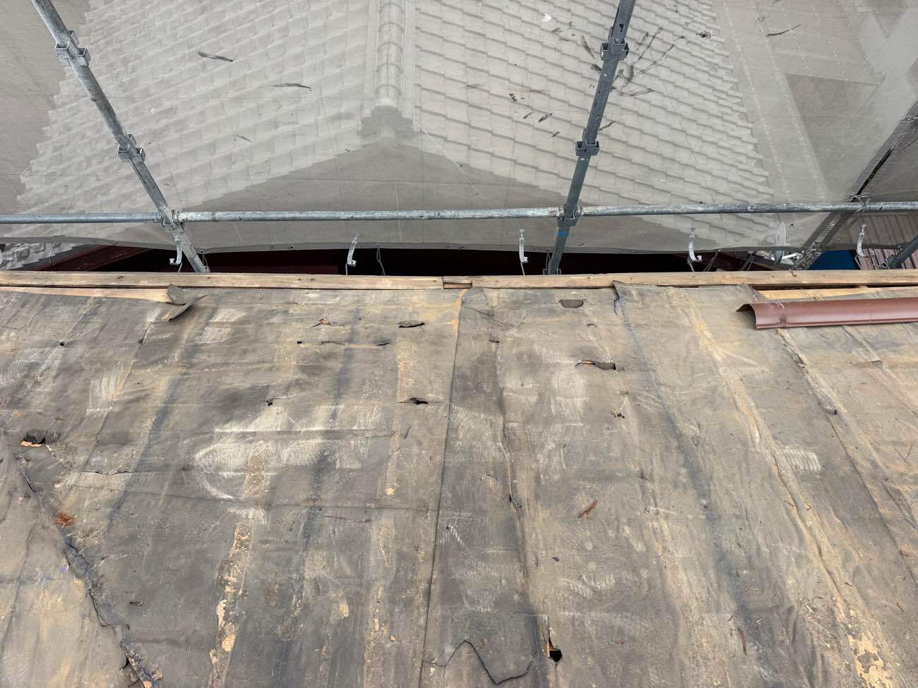 ⑦屋根土、杉皮が綺麗に撤去されました。
