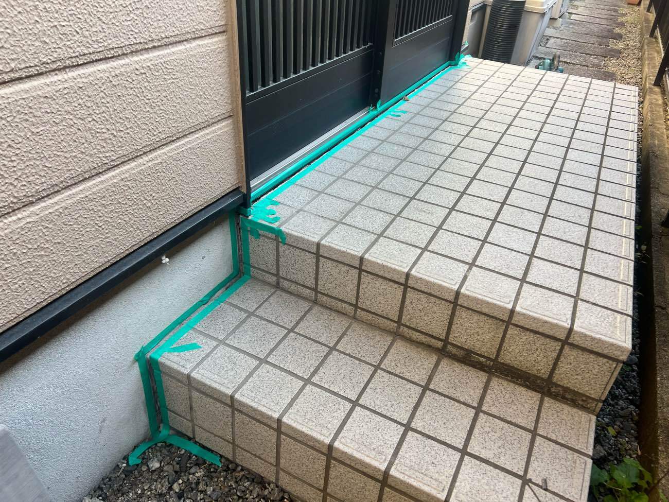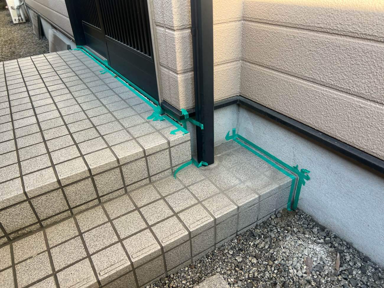 ②コーキングを充填する個所にマスキングテープを貼っていきます。