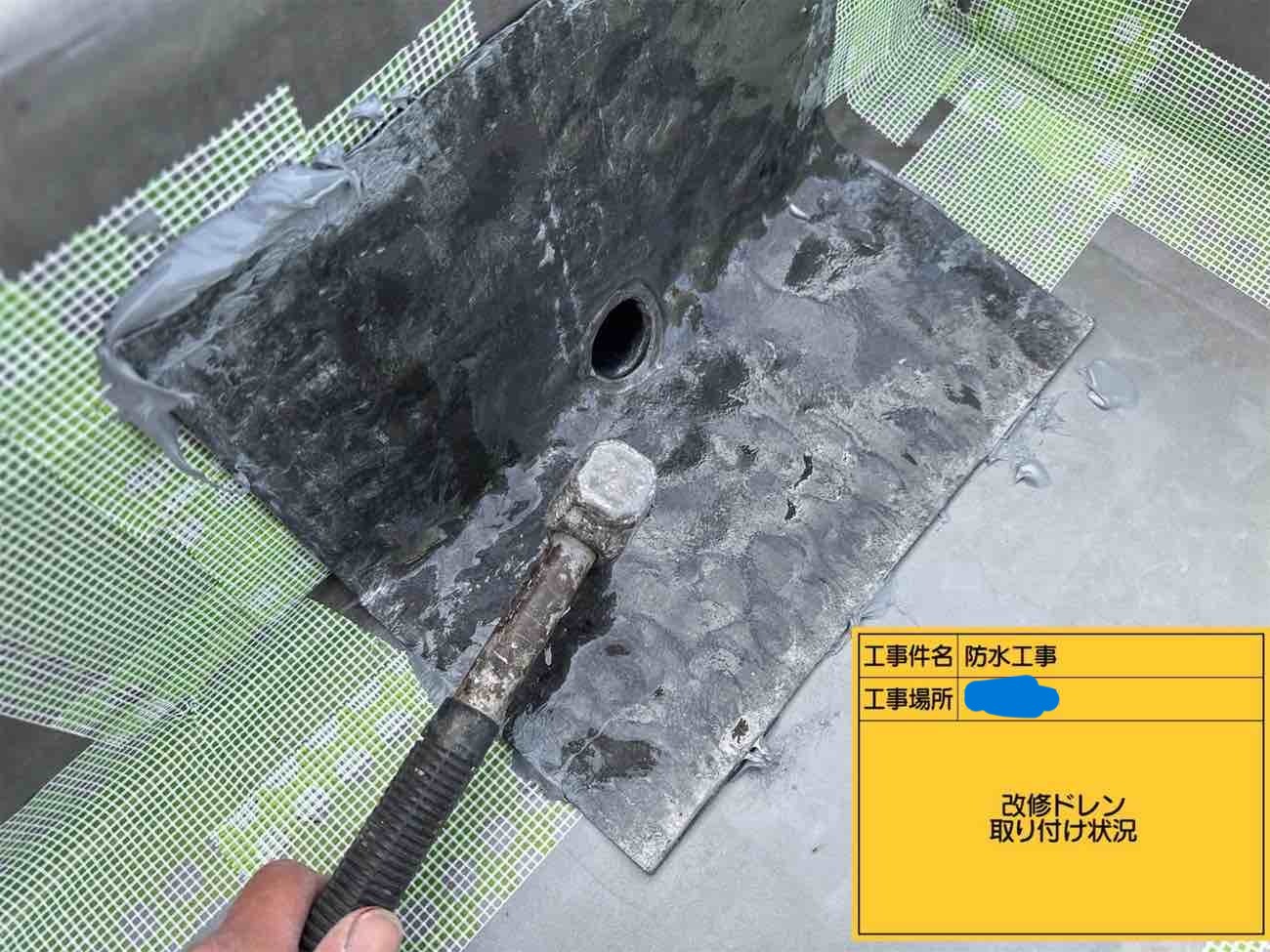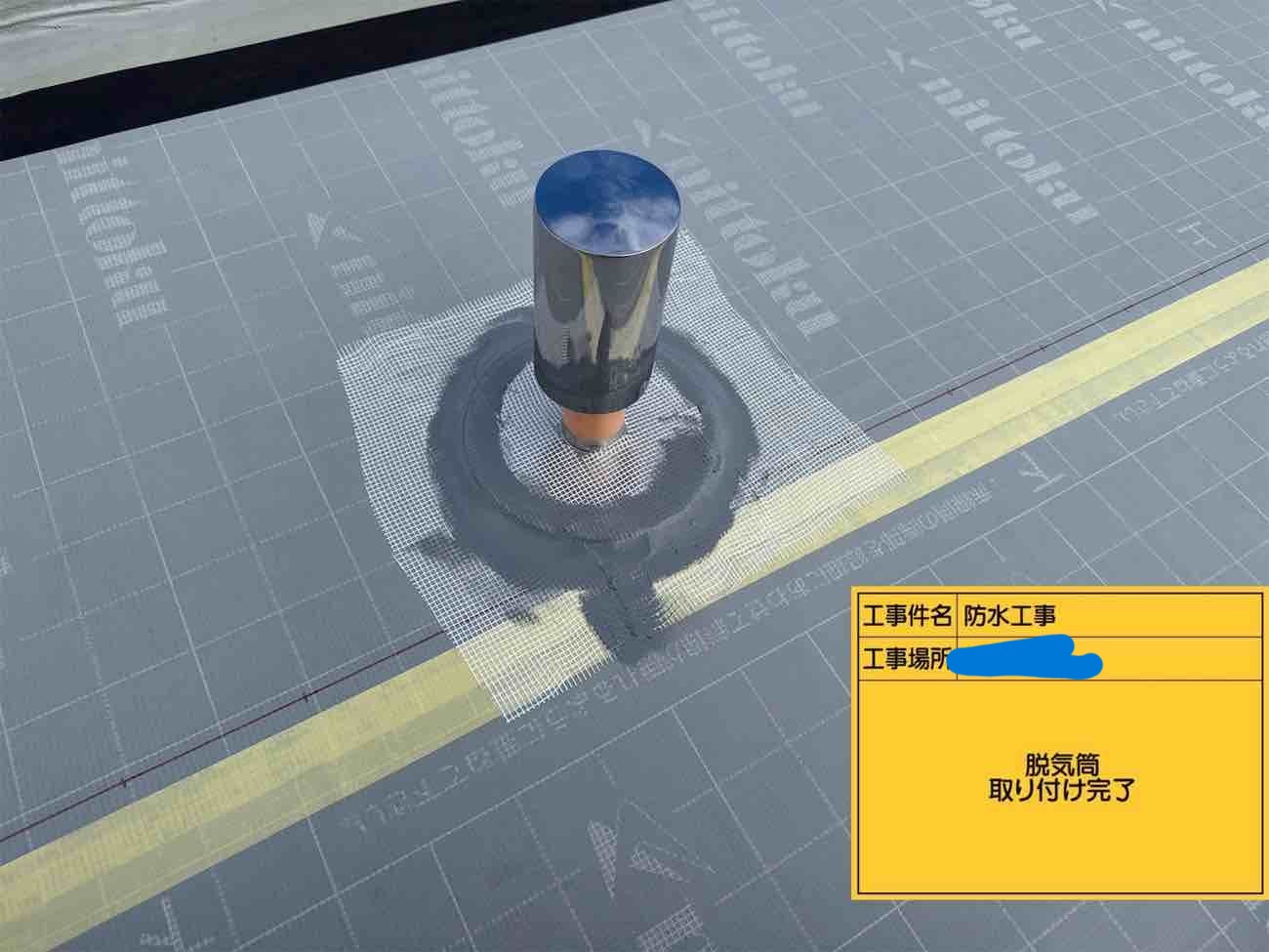 ⑨脱気筒(防水層と下地の間に発生する水蒸気や空気を外部へ排出します。)を施工しました。