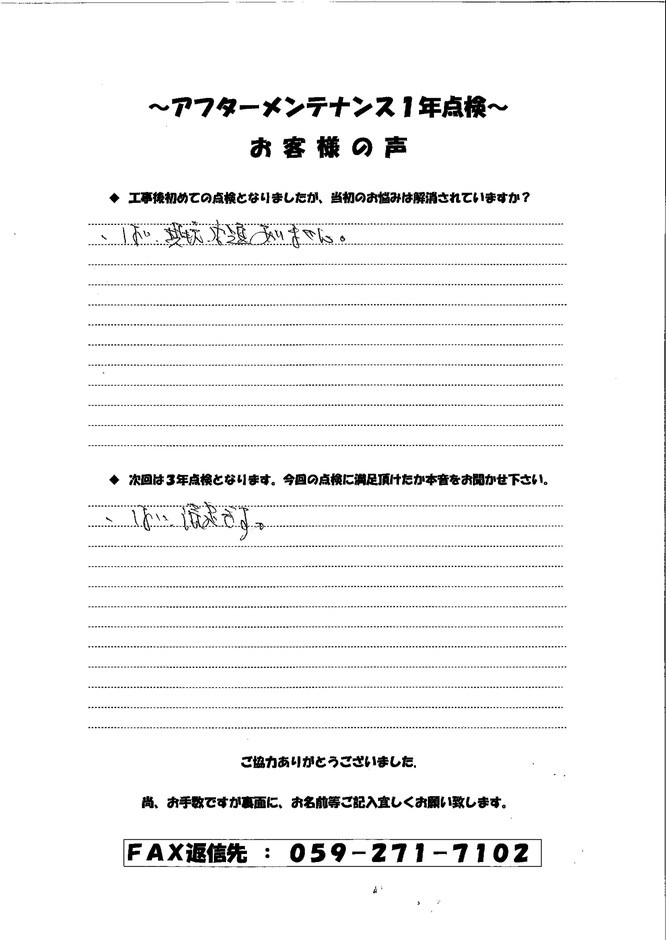 •   お客様の声/メンテナンス事例