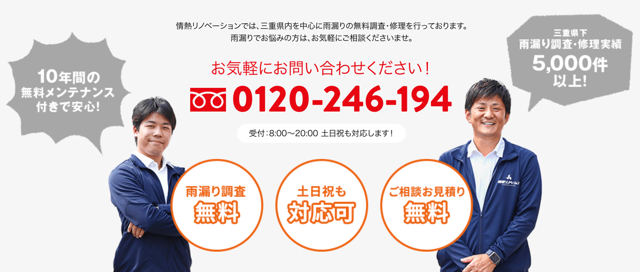 三重県津市の雨漏り修理専門店「情熱リノベーション」 > sq-inq-page-btm