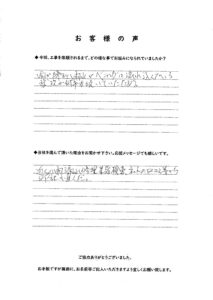 この度は実家の雨漏りを直していただき、ありがとうございました。 一度見ていただいてから数年たっての同じ場所の雨漏り。 正直本当に直してもらえるのかと思いました。 ですが、今回はじっくりとあらゆる方向からチ... 続きを読む