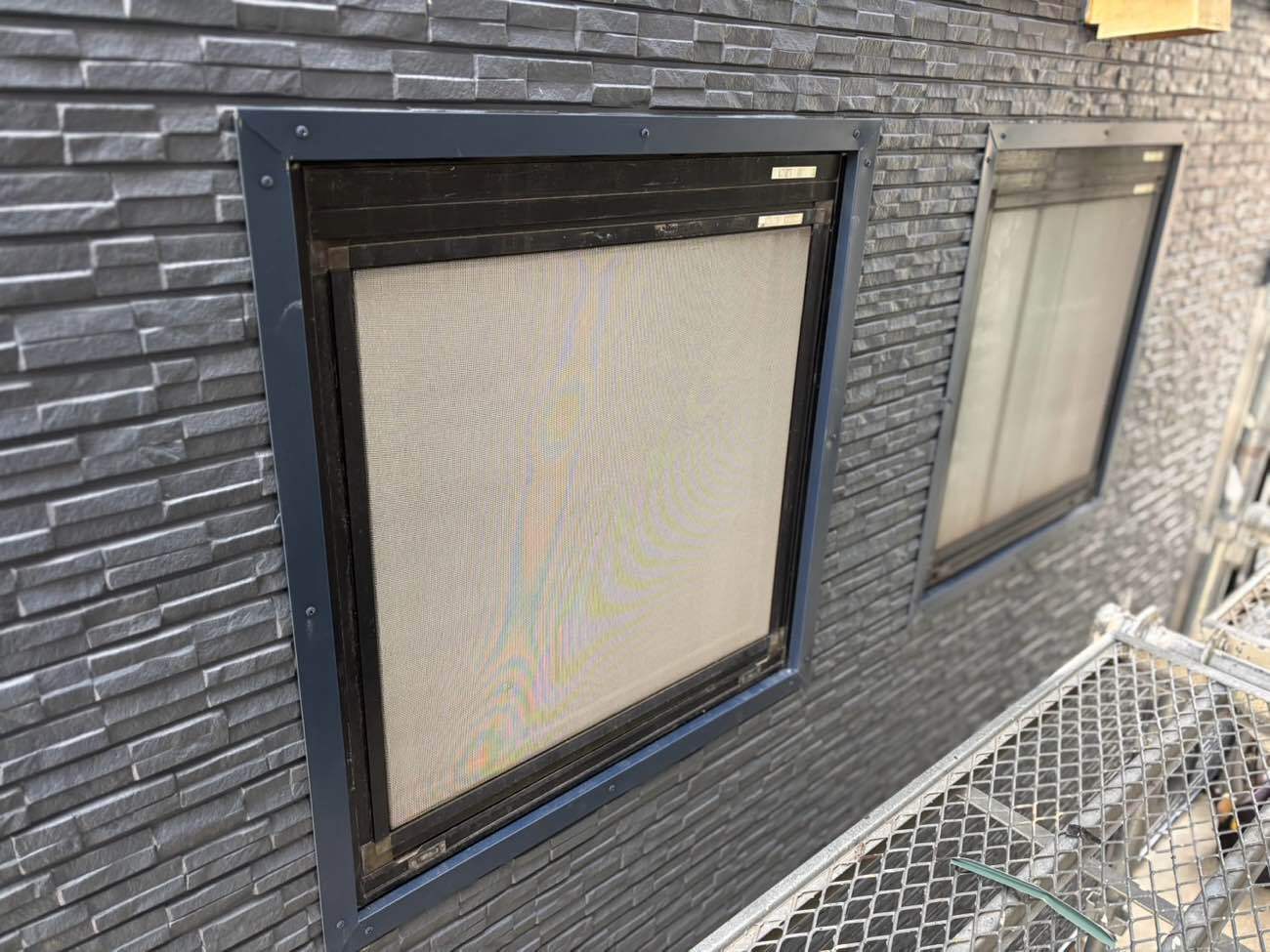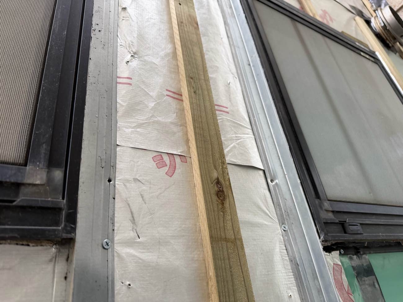 ㉝サッシ廻りに見切縁(雨水や汚れの侵入を防ぐ)を施工しました。