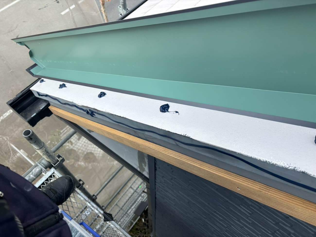 ㉜土台水切り(外壁を伝う雨水が内部へ侵入するのを防ぎ湿気や腐食から建物を守る)を施工しました。