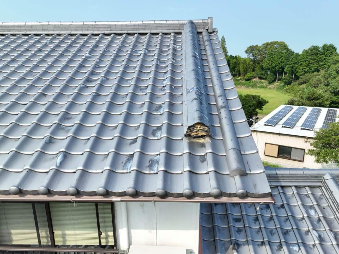 工事のきっかけ 鬼瓦が落ち屋根瓦が割れたため