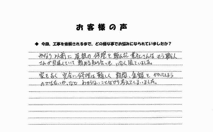 •   お客様の声/メンテナンス事例